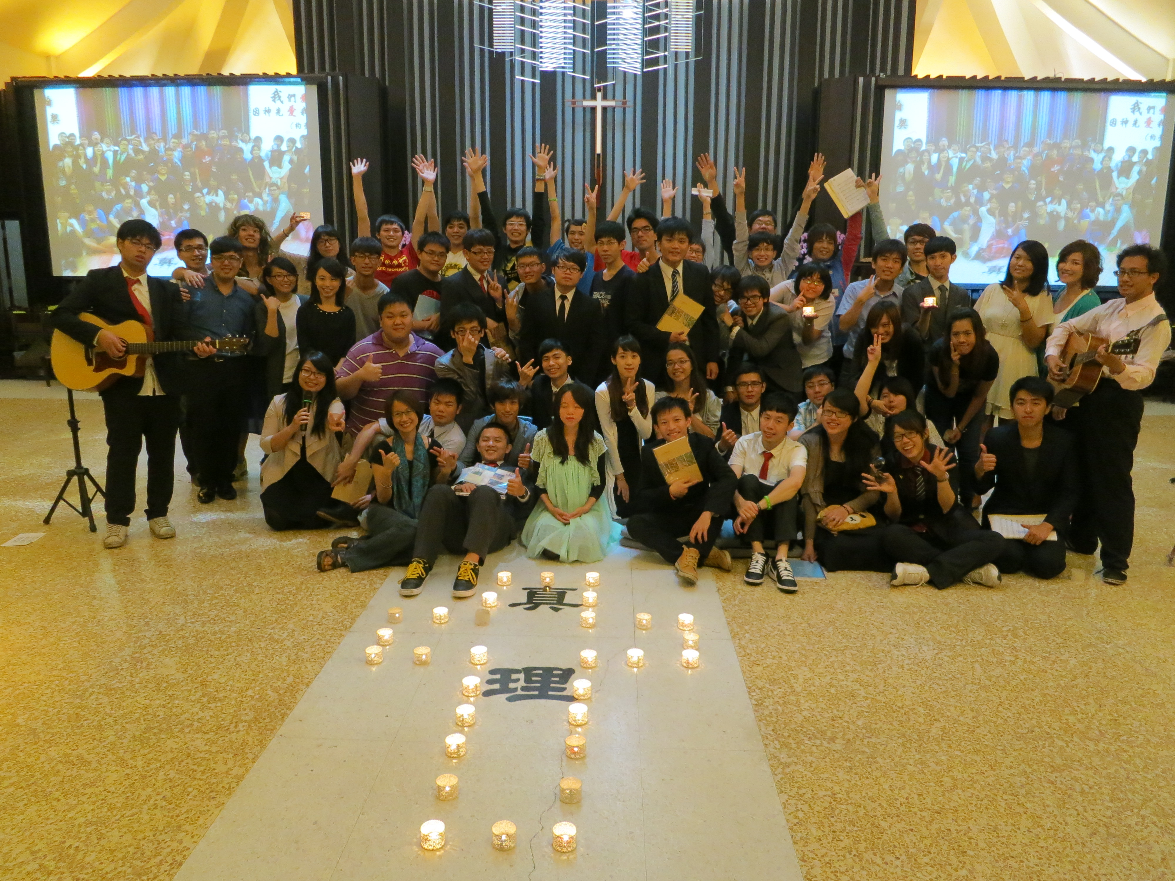 Last night was the farewell 送舊 event, the students in years 1-3 saying goodbye to the graduating students in year 4 with a posh meal, entertainment, DVD of everyone saying goodbye and wishing them well (not just any old boring DVD, they’d spent hours filming around the campus and inviting people to take part) ~ then year 4 responded with their own farewell video (filmed in the church) and songs and presentation gift of a camera… older students from former years came by to bring their congratulations, then the graduating students were led around the campus and back in with eyes closed to a candlelit church for songs and prayer and gifts and photos and then cake…