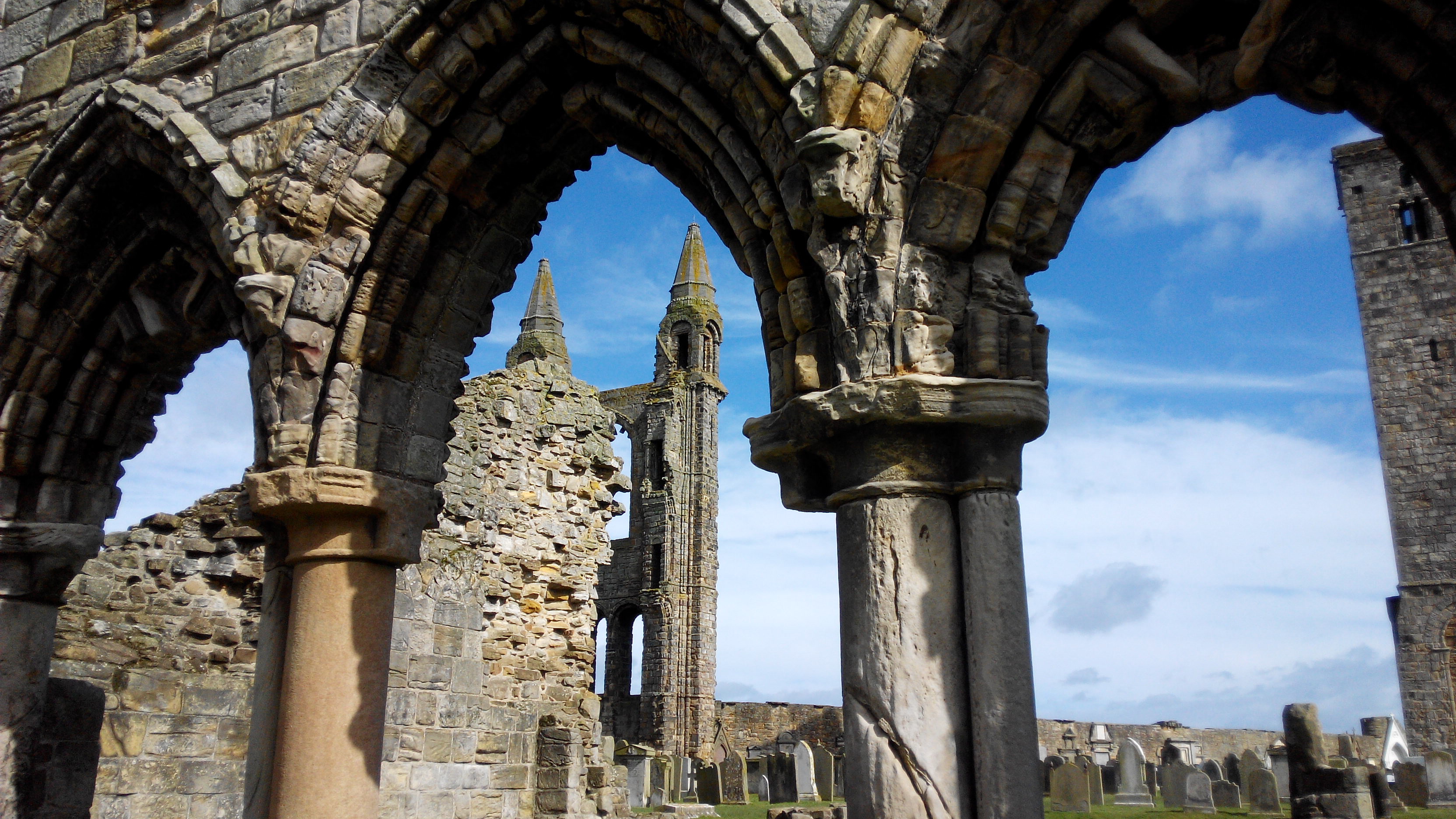 Ah, St. Andrews, home of all sorts of things ~ Scotland’s oldest university, the ruins of Scotland’s largest cathedral, and home of the oldest and most iconic golf course in the world, and right on the sea.  Oh yes, and  famous for being the place where Prince William and Kate met as students….