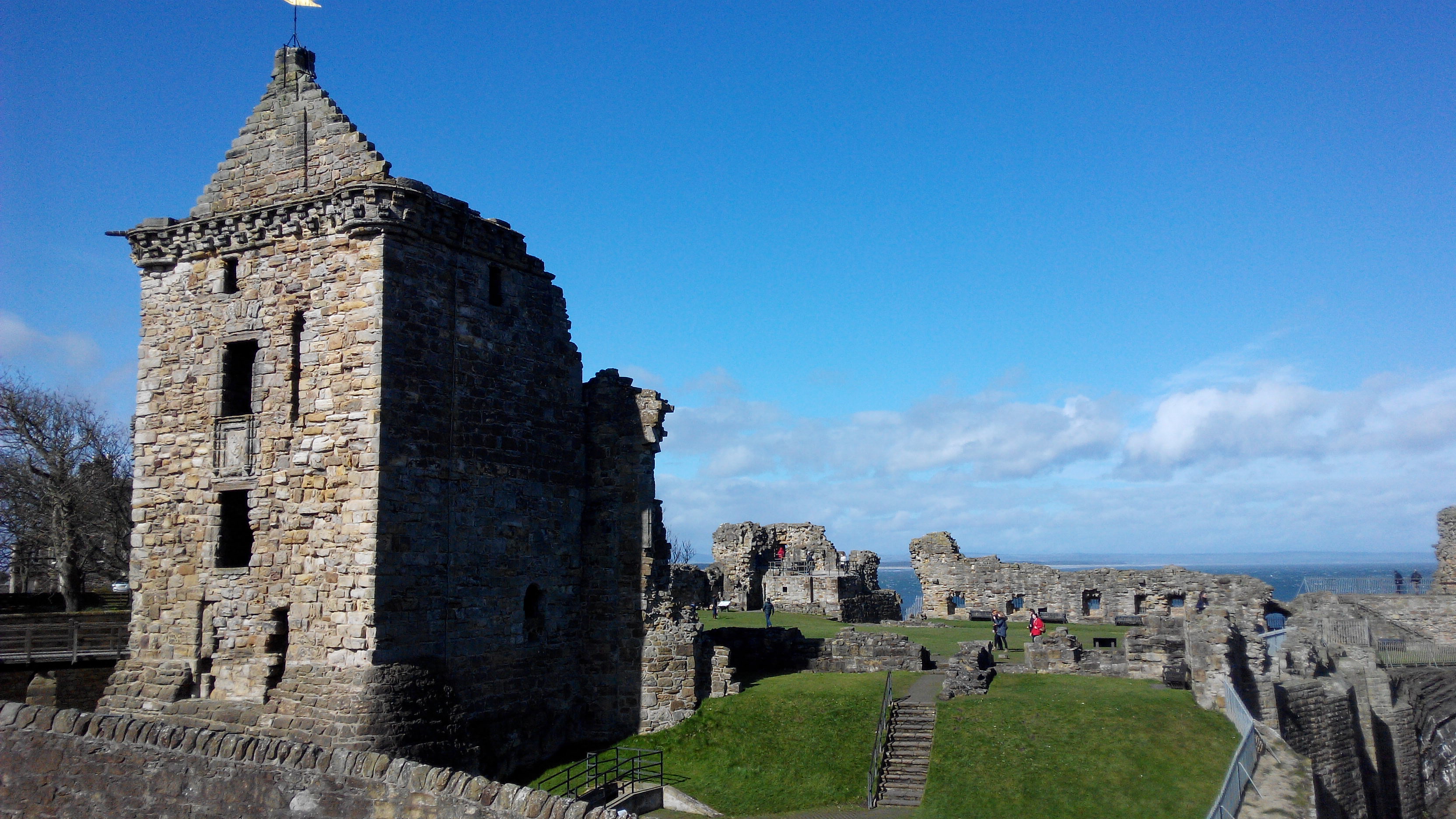So while they rang bells, I went to see the ruins of St. Andrews Cathedral, up St. Rule’s Tower, and to the castle ~ and later we went to the Royal and Ancient Golf Club, near the beach featured in opening scenes of Chariots of Fire…..