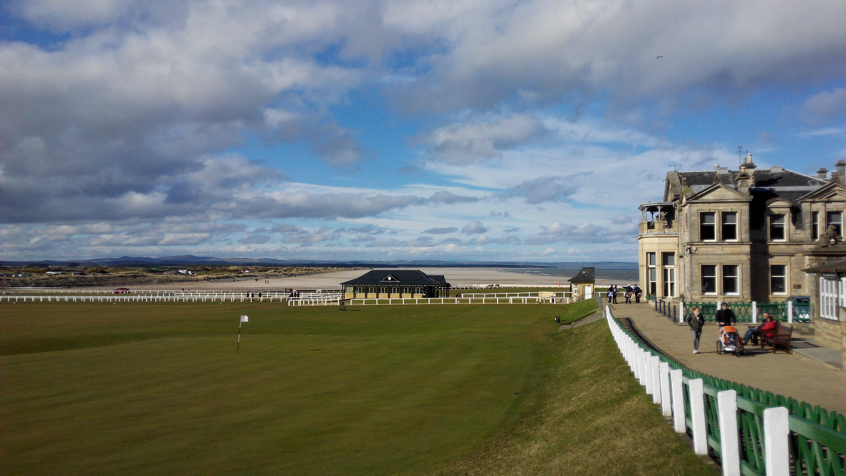 See that white flag on the golf course?  It’s the 18th hole of the most famous golf course in the world ~ and the 2015 Open Championship is coming here in July, YEH!