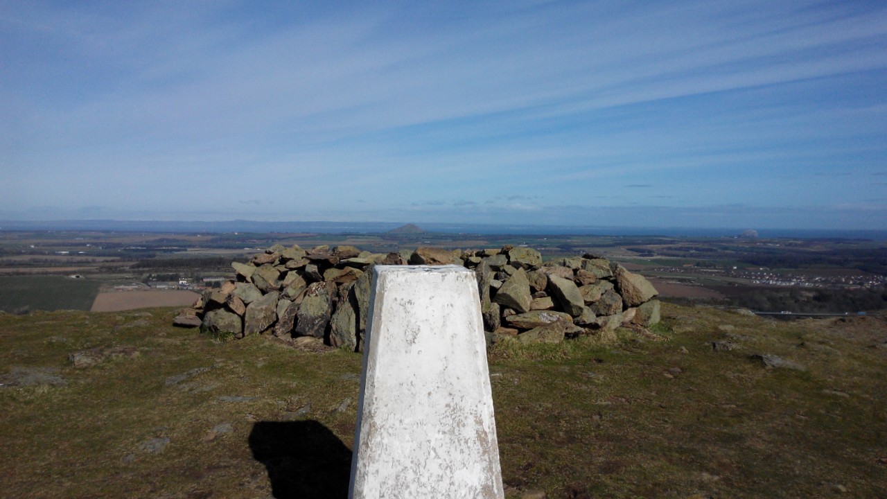 And discovering in fact that we’re now kind of directly across the Firth of Forth from where I was last Friday on Largo Law ~ so up we went this morning to the local hill, Traprain Law from where there were views of Fife, and even of Largo Law….