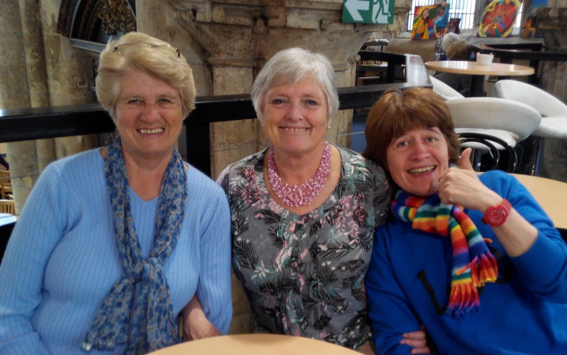 Here we are, or rather there we were, the 3 of us, in York today, meeting up for coffee. Me, Shelagh and Diana. And in great excitement and anticipation of such a special event, dear Shelagh had paid for parking for 5 hours….. yep, five whole hours! So, coffee stretched into lunch, and lunch stretched into, well the mid-afternoon. And we talked non-stop. Lots to talk about. All of us have been with CMS somewhere sometime somehow. And lots to laugh about too, hence the photo. Actually we took it for our good friend Rev. George Kovoor, our former principal at what was Crowther Hall, CMS Training College in Birmingham, he’s now the rector of St. John’s Episcopal Church, New Haven, CT., USA – and his lovely family.