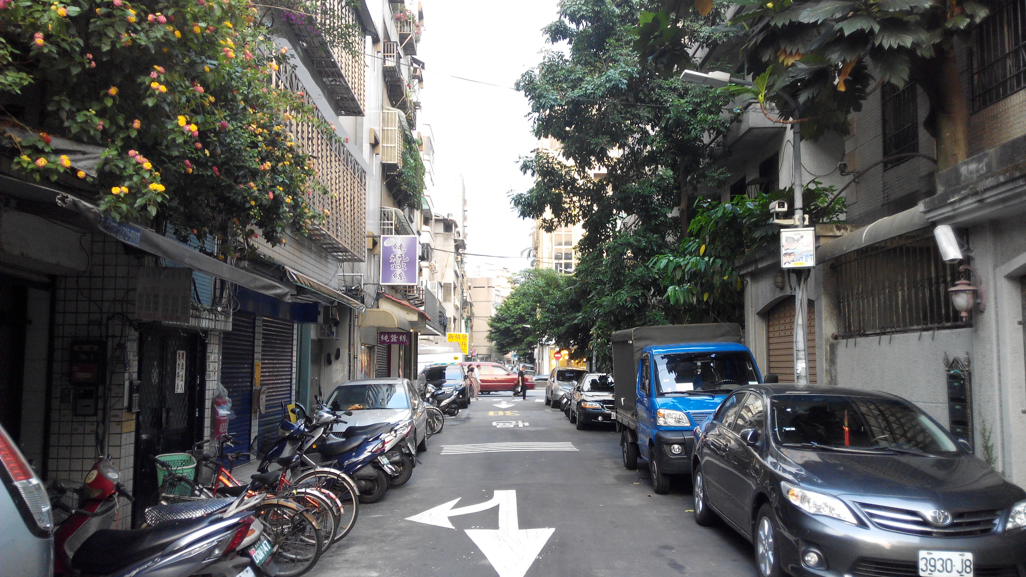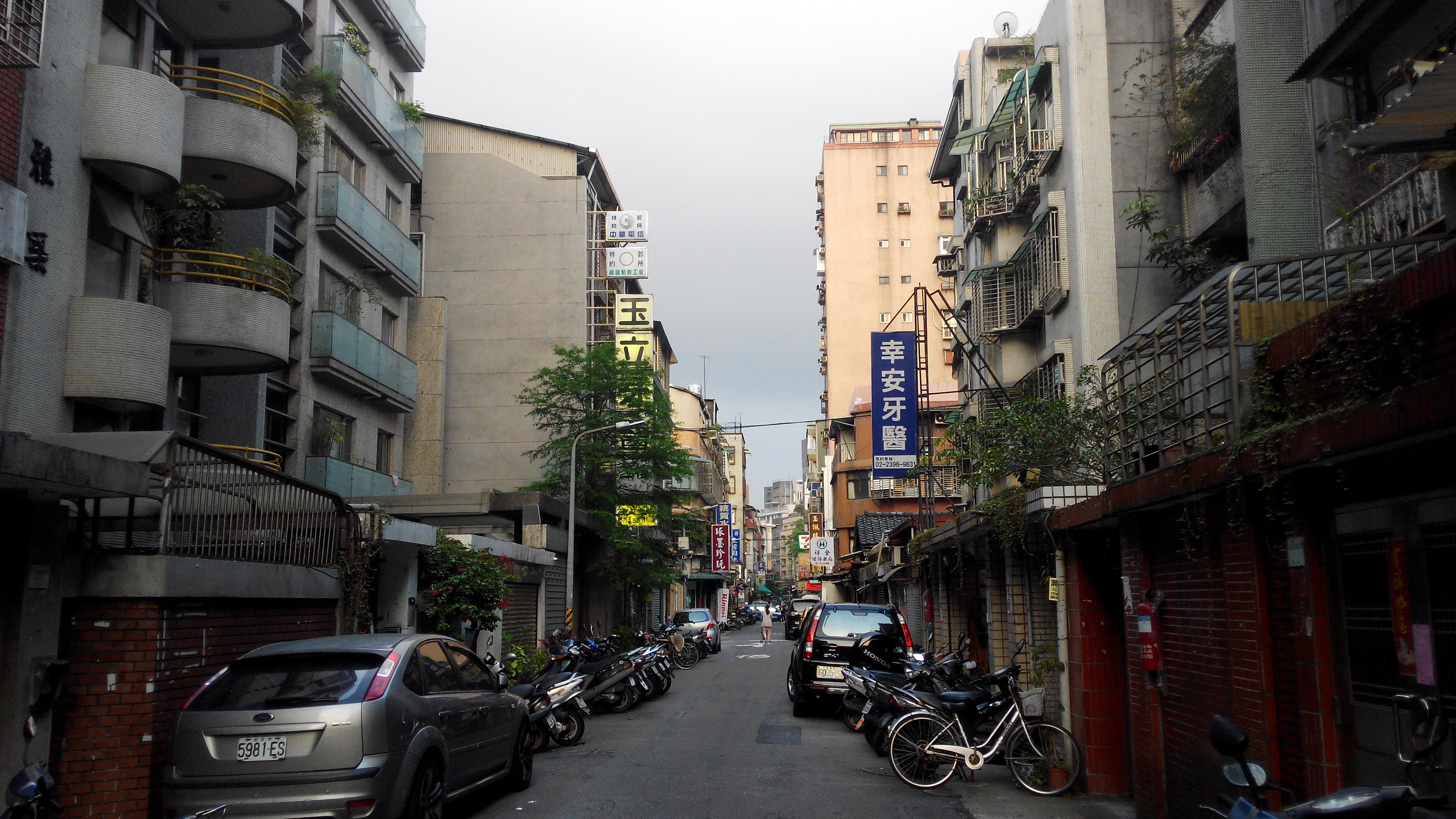 During the Japanese colonial era, 1895-1945, this area of Taipei was home to many Japanese living in one-storey Japanese-style homes, mostly wood, with heavy tiled roofs. Only a few such houses still remain and most of them are falling down and overgrown by trees and bushes. All have been replaced by higher-rise buildings, but the street layout remains the same ~ lots of narrow streets and alleys. All very orderly, neat and tidy, with bicycles, motorbikes, cars and pedestrians all competing for road and parking space!