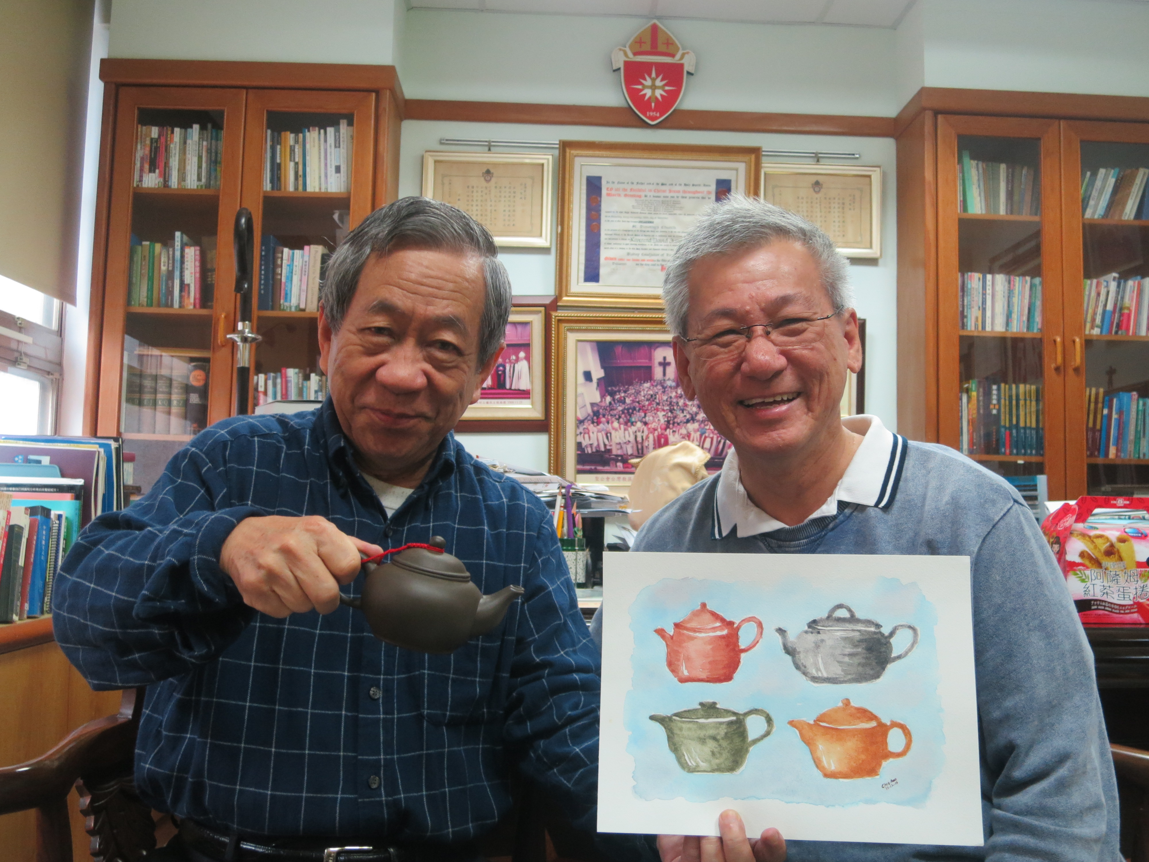 But first, their farewell tea-drinking with Bishop Lai ~ and Chye Ann had painted a teapot watercolour picture for him as a gift ~ beautiful eh?!