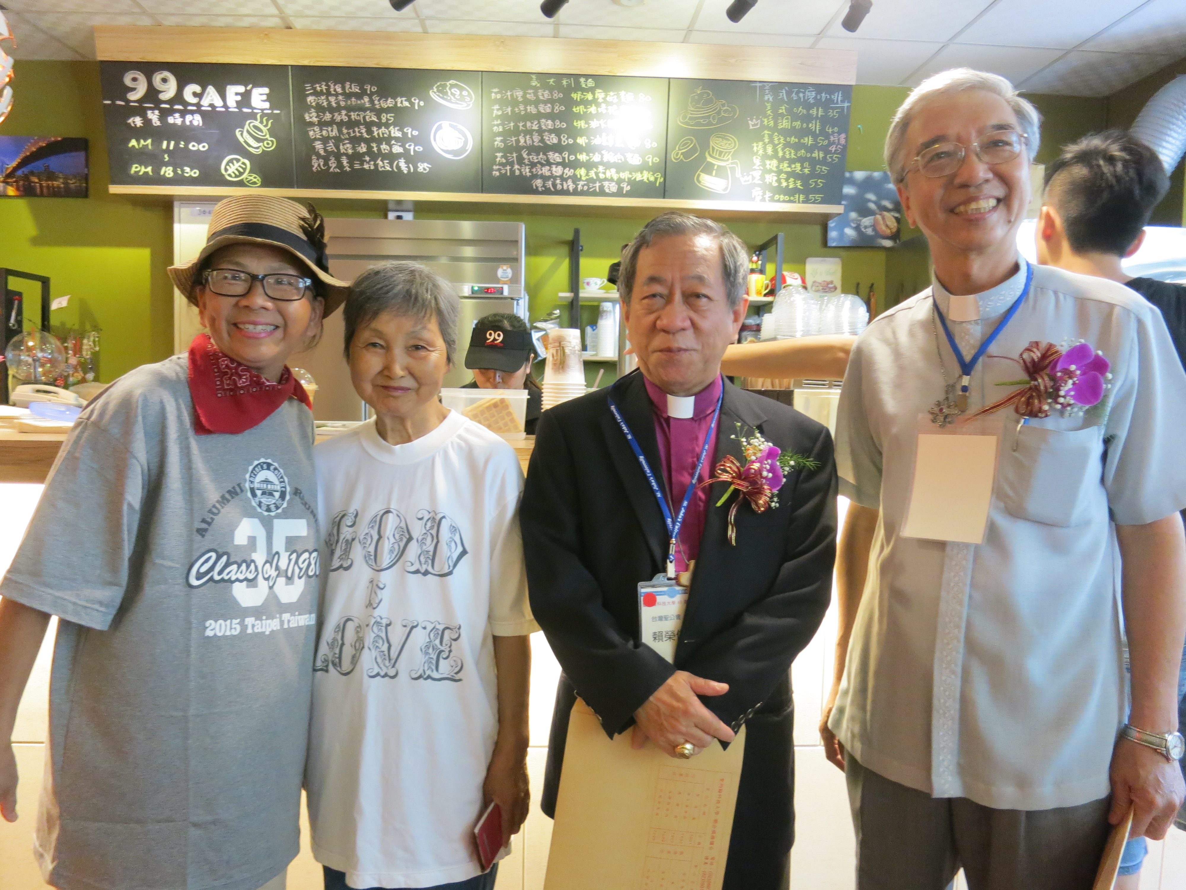 Taiwan’s President Ma Ying-Jeou officially steps down as R.O.C. president on May 20, so this was his final visit to St. John’s University as president ~ and he was here especially for the official unveiling of the Zhuo-Yun Building 倬雲樓, named after Dr. Cecilia Koo 辜嚴倬雲 (倬雲 Zhuo-Yun being the 2 characters of her given name), who has faithfully served as chair of our school board of trustees since 1972. Dr. Cecilia Koo’s late husband was Koo Chen-Fu, President of the Straits Exchange Foundation 海基會 from 1990–2005, ‘a semi-official organization set up by the Republic of China (ROC) government to handle technical or business matters with the People’s Republic of China’. This is Dr. Cecilia Koo below (second right) in our newly-opened SJU Coffee Bar on her arrival this morning, with Rev. Samuel Lin, former chaplain and former dean of our cathedral, plus ladies from the trustees of Taiwan’s National Women’s Organization…