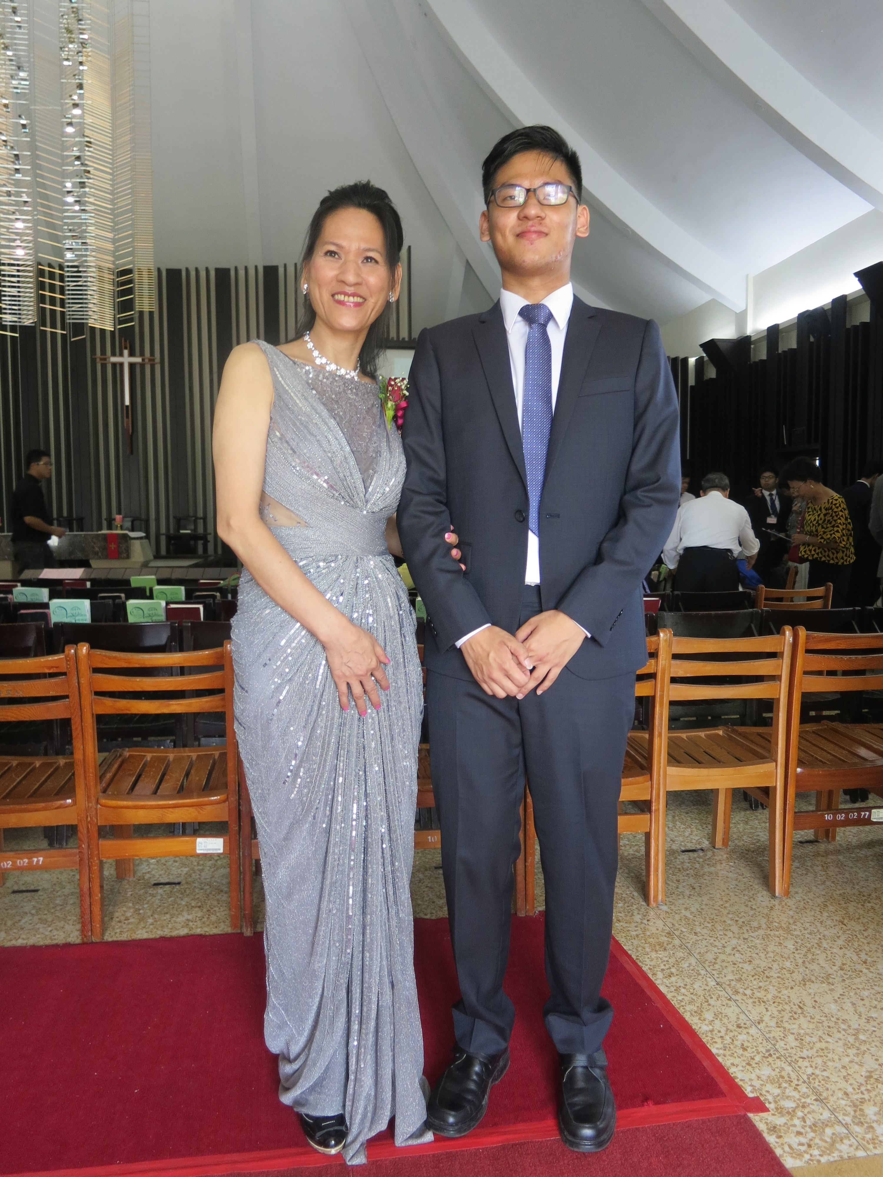 Mr. 蔡秉桓 Tsai Bing-Huan is one of our most mature and active members of St. John’s University Student Fellowship ~ he’s just great, so polite, so dedicated ~ and so brilliant on the guitar! Ah, we love him so much! Here he is with his mother….