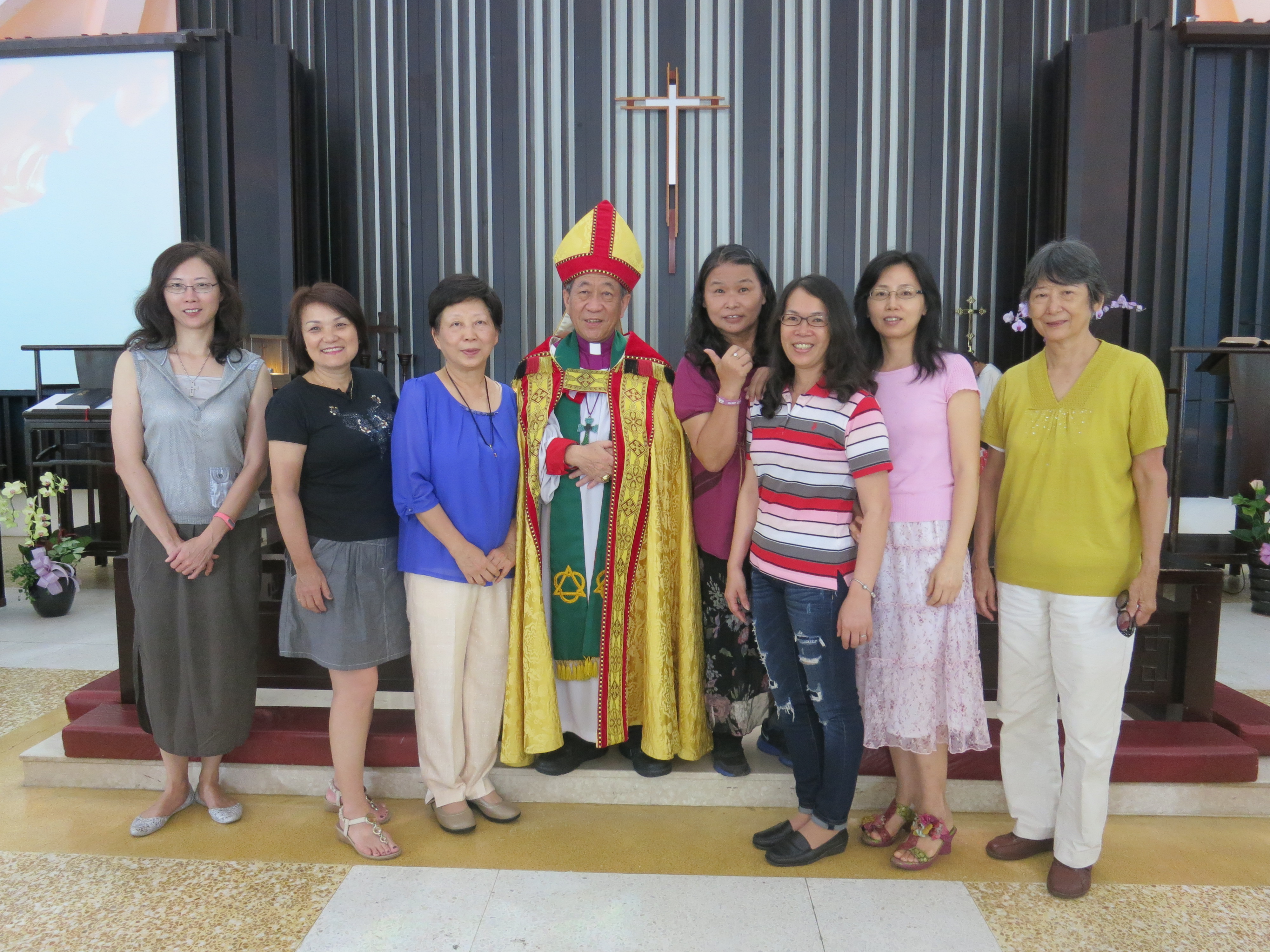 There were many other VIPs at the service, too many to mention by name, and also VIPs from many of our other churches in northern Taiwan. 6 lovely ladies came from St. James’ Church, Taichung, they actually made a weekend of it, led by my good friend, Ah-Guan, who stayed with me overnight, and 5 of them spent Sunday afternoon at my house drinking coffee between services. They were also at Advent Church for the morning service, here they are with Bishop Lai and Mrs. Lai, plus Mrs Grace Chien.