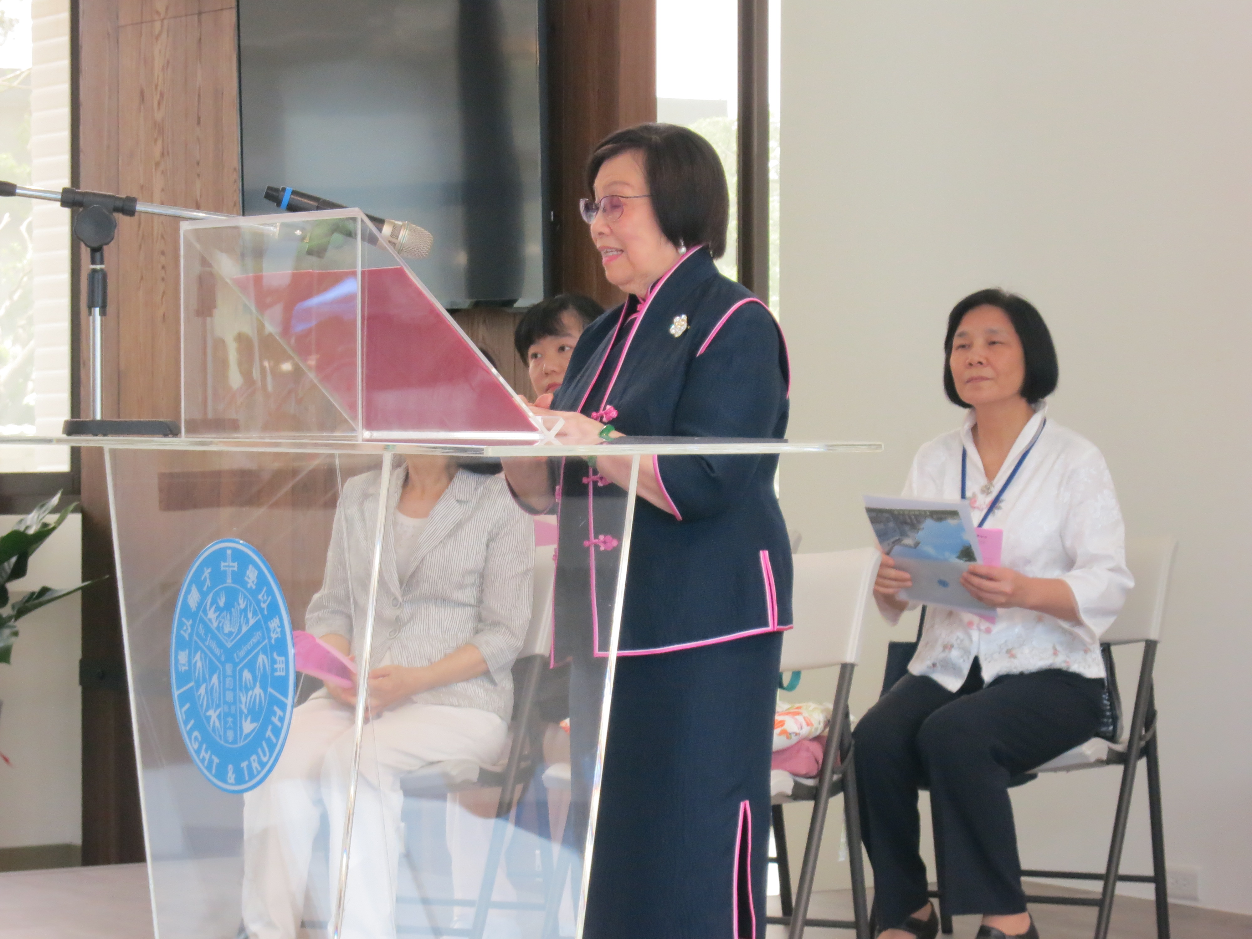 We also welcomed Mr. Mai, Chair of the Board of Tamshui First Credit Bank, friends from the bank, and the bank choir (all beautifully dressed in pink and black). They sang at the unveiling of their plaque on the lower floor, led by our wonderful music teacher, Mrs Wang and accompanied by Yu-Lin from our SJU Chaplaincy staff on her flute. It was great! The plaque is in memory of Mr. Mai’s late father, Mr. Mai Chun-Fu 麥春福 (1924-2004), who was also chair of the bank, as well as being a presidential national policy adviser. Many years ago he donated a piece of family land which forms part of the SJU campus today. The bank and university have a very close relationship, and the bank has also made a generous donation to the church center project, and the music room is named in Mr. Mai’s honor.