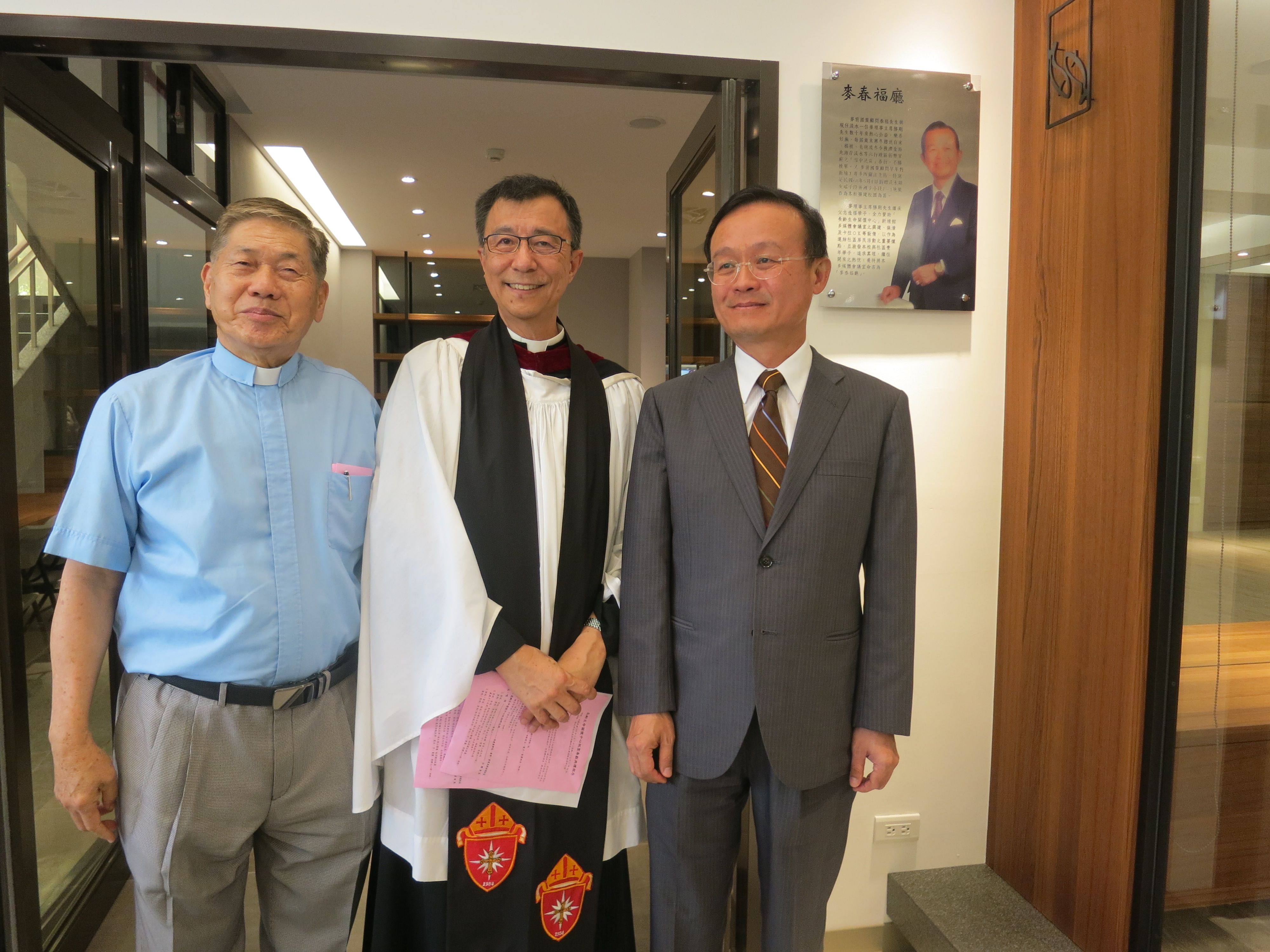 We also welcomed our good friends from St. James’ Church, Taichung, Rev. Charles C. T. Chen and his wife, MaryJo, and it turned out that many years ago when Charles was accountant here at SJSMIT, he had known Mr. Mai Chun-Fu very well! Here is Charles, Lennon and Mr. Mai along with the plaque…
