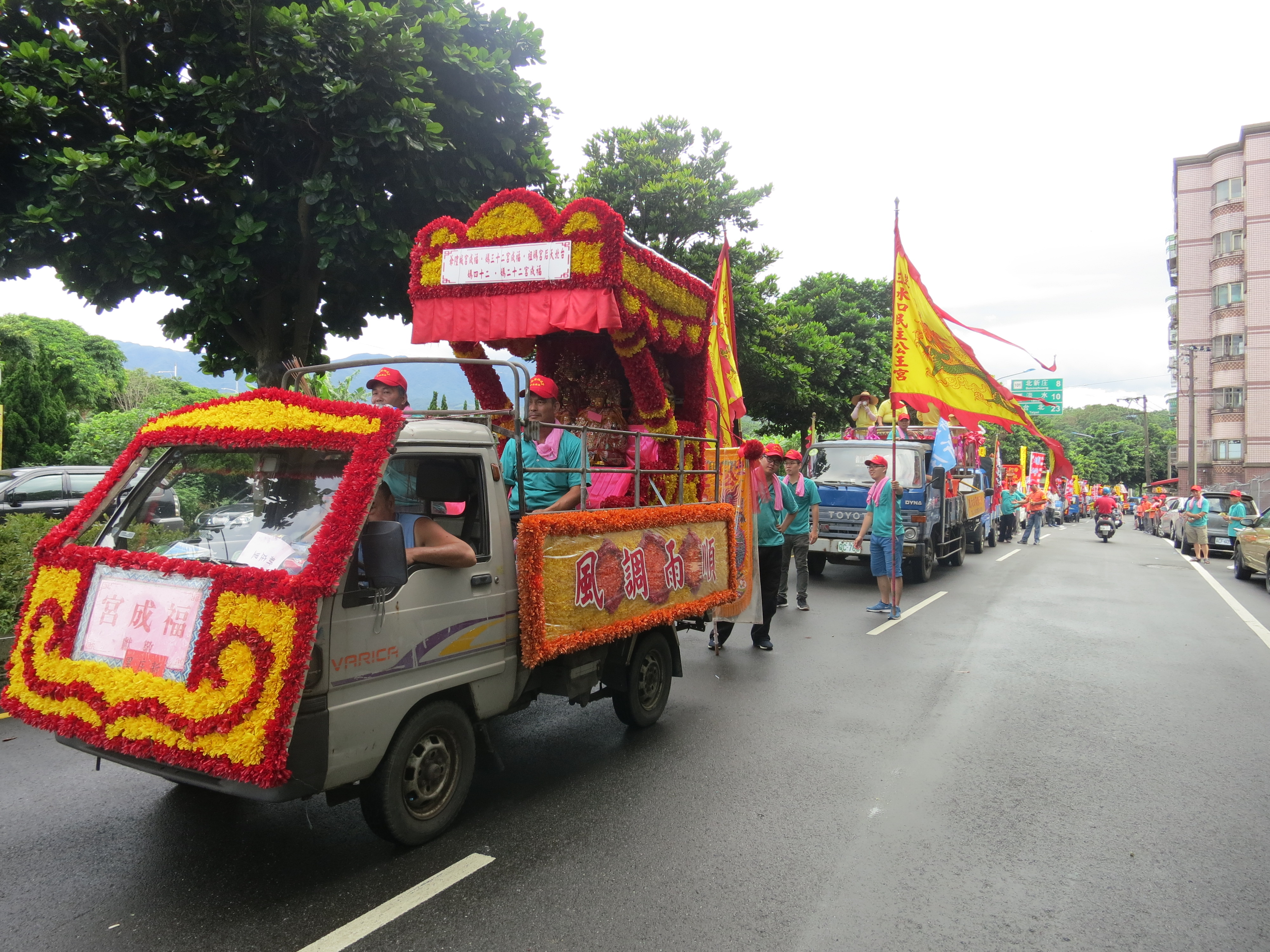 Every year at Dragon Boat Festival time, Tamsui and Sanzhi hold massive parades involving hundreds of gods, deities, idols, lion dancers, horn-blowers, drummers, firecracker-lighters and participants from the temples all around. On Friday it was the turn of Tamsui, yesterday was the turn of Sanzhi. This is known as 大拜拜 (da bai-bai) ‘Big Worship’. ‘Bai-bai’ specifically refers to traditional religious worship in the home or temple, involving offerings of incense and maybe food to the ancestors or deities.