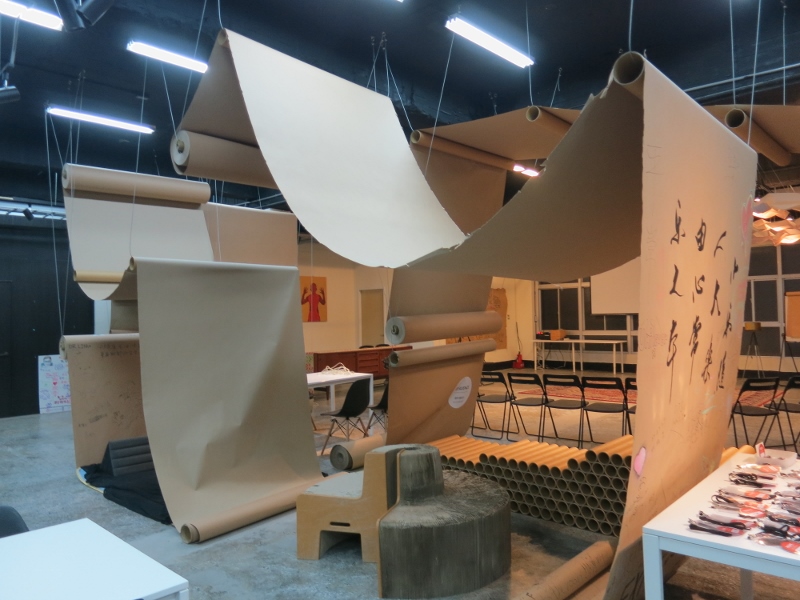The art installation part is the use of huge rolls of brown paper which are draped and hung around the room, drawn on and painted on, used as spaces to socialize in or just for decoration. It’s quite amazing!