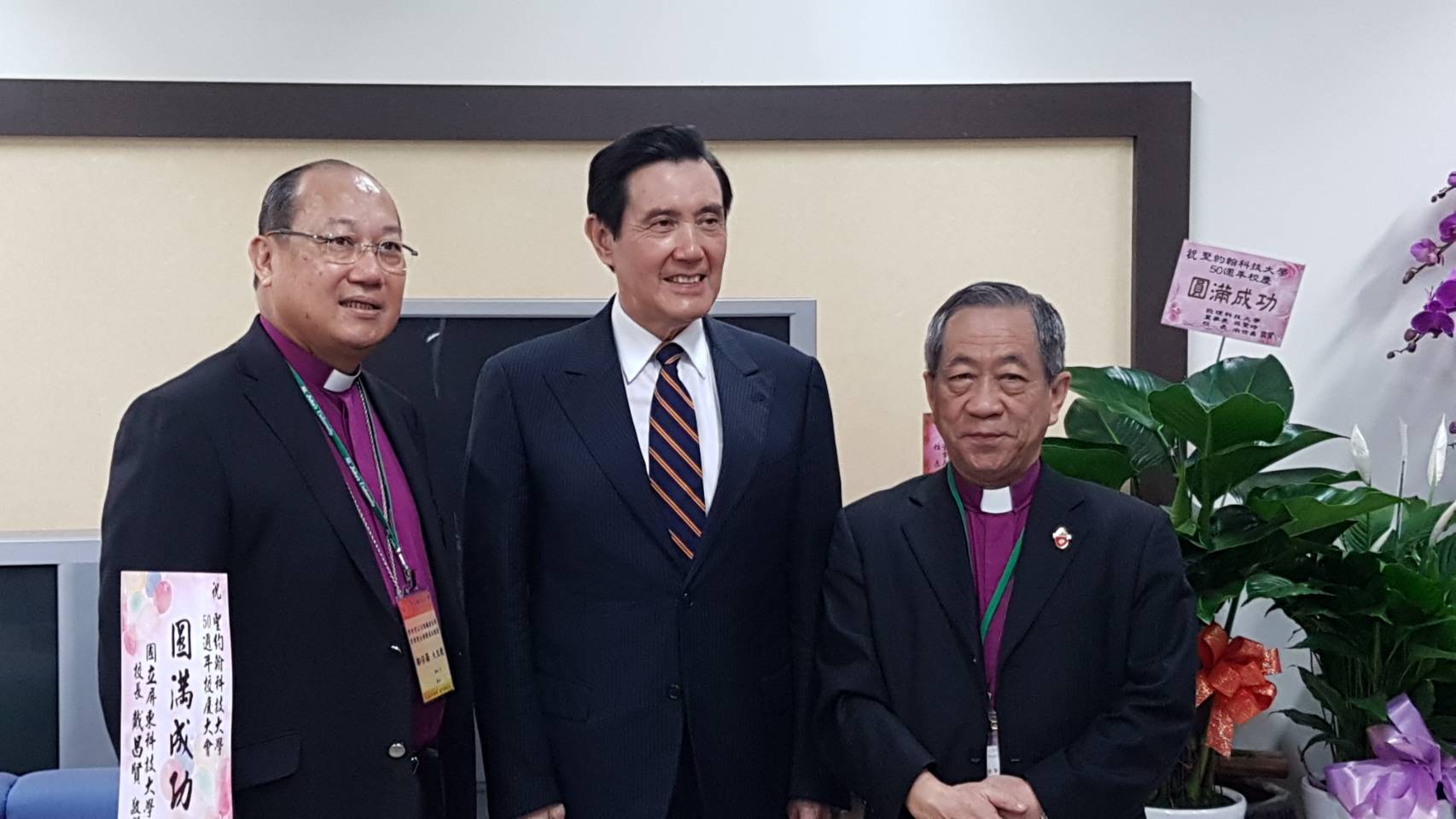 Thanks for everyone who planned, orchestrated and joined in the celebrations from far and wide, including our visitors in this photo – sent to me by Bishop Lai, of him with Archbishop Kwong and President Ma.