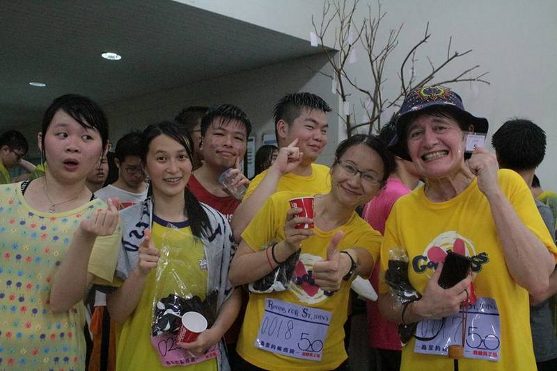 On Wednesday afternoon, SJU held the annual fun run, 3.5 km – around by the sea. A group of about 20 of us from the chaplaincy and student fellowship entered. The heavens opened just as we were about to start, so we delayed about 20 minutes and then started the run. But half way round, the rain came down again and we were all well and truly soaked through. Ah, but it was great fun! This is the ‘before’ ~ with SJU President Ay…
