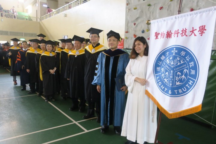 SJU President Peter Herchang Ay led the faculty procession. It is his first graduation ceremony as president.