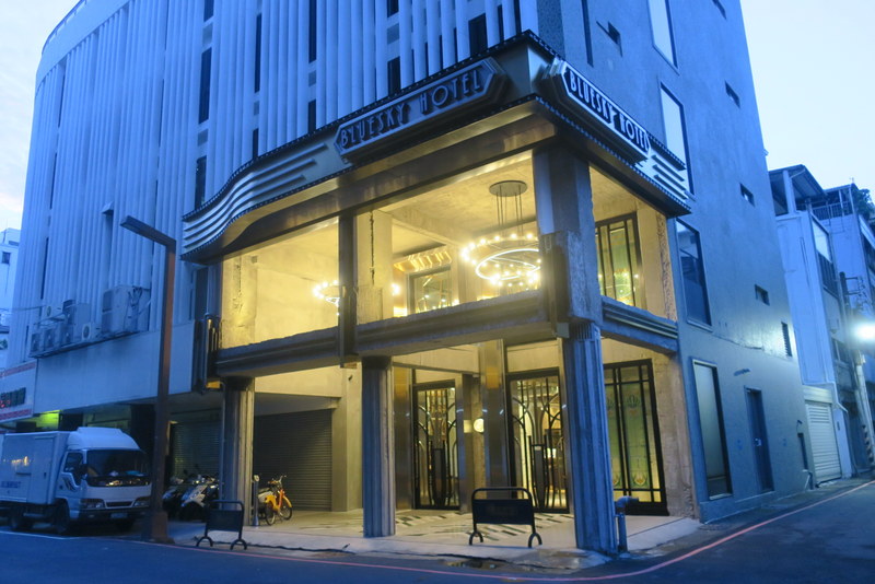 So, on my monthly visit to St. James’ Church, Taichung this past weekend, I found myself at 5:00 am on Sunday morning with a u-bike ~ and off I went to find it. It’s only 15 mins ride, down towards the train station, in a part of town where, let’s say, there’s plenty of room for improvement… As you can imagine, the place was hardly throbbing with tourists at 5:00 am on a Sunday morning, so the nice receptionist gave me my very own tour. Central to the lobby is a huge floor-to-ceiling wall artwork consisting of genuine vintage 1970’s suitcases all stacked very artistically. The numbers of the lifts are all Roman numerals, and the reception area is all vintage style. I like it!