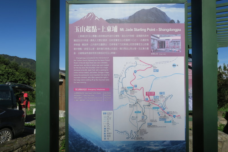 By 9:00 am on Wednesday morning, we were at Yushan trail-head (at 2,600 m above sea-level) ready to start our 8.5 km climb to Paiyun. The sun was out, the skies were blue, the clouds were white, the path was clear, the weather was cool, and we were smiling away ~ and all in yellow!