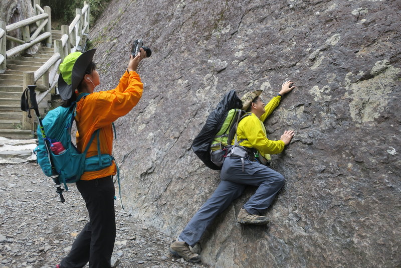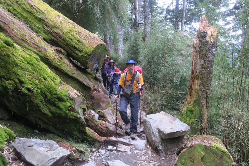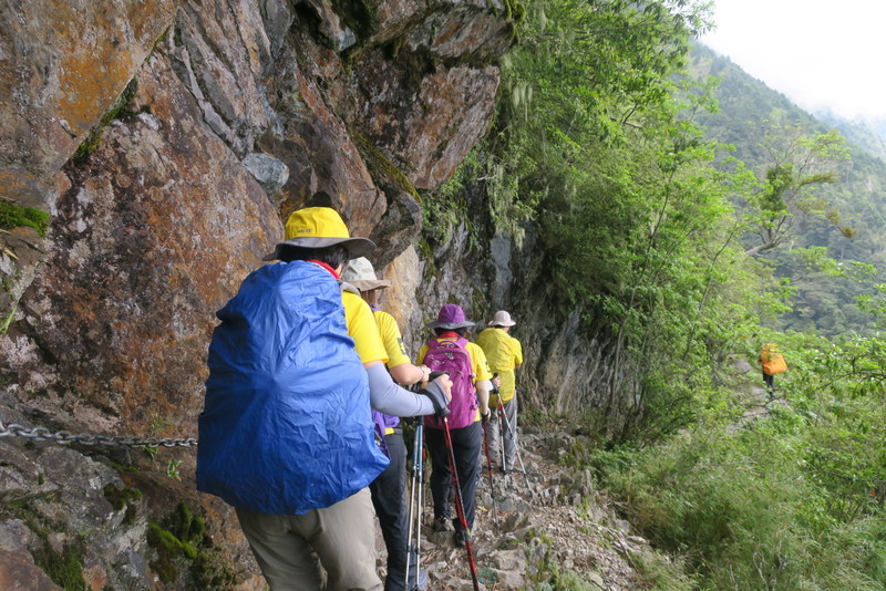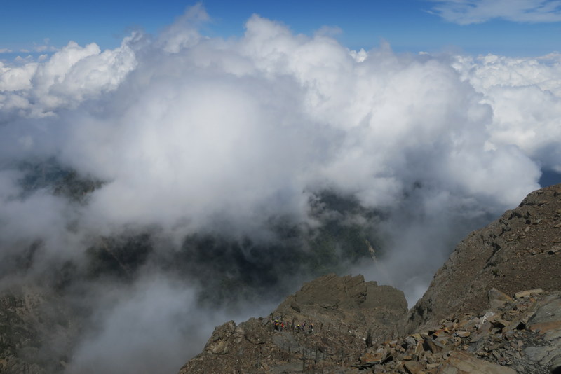 So bye bye to Paiyun. Farewell. We started our descent, and down we went. The clouds were behind us. Mostly. A typical pre-typhoon day. Usually immediately before a typhoon, we have alternating rain and sunny spells. That is what we had yesterday. A few minutes of drizzle then the sun came out. Repeat. All day. Fortunately we had sufficient rain to make it worthwhile getting into our rainproof over-trousers. Even for 5 minutes, it was worth it. After all, I do not like to carry something all the way up to a huge mountain and not use it, ha ha!