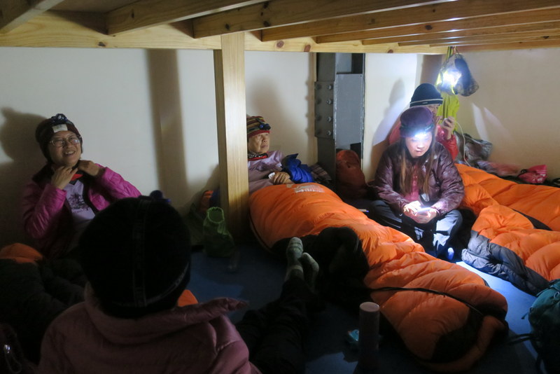 The idea is to do the final push (2.4 km) to the summit in the darkness, and arrive on the top to see the sunrise. Most people are then descending all the way down back to the trail-head and going home. But we had 2 nights at Paiyun, so we had a whole day. Yes a whole day! Jasmine’s mother stayed at Paiyun all day, resting and talking to everyone (she’s very friendly!) but she got up to see us off. It was 10°C at 2:30 am and cold ~ but the slopes are steep, and soon we were removing layers.