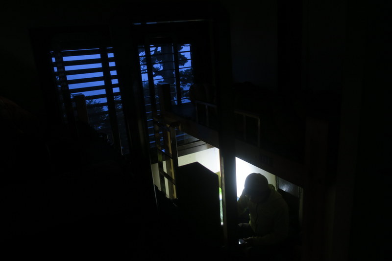 Paiyun is 3,402m in altitude – that’s High with a capital ‘H’! At that altitude ~ and on the wooden boards that we laid our sleeping bags on, sleep is difficult and headaches are common, and all the people around on each side are busy snoring away (ha ha, actually my neighbours were quite quiet!) Anyway, it really means that nobody can expect a 5 star night’s sleep. Plus, at 1:00 am, we were all getting up. Yes, 1:00 am! Breakfast was at 1:30 am and by 2:30 am we were all ready, with our headlights on, for a day on the Yushan mountain tops.