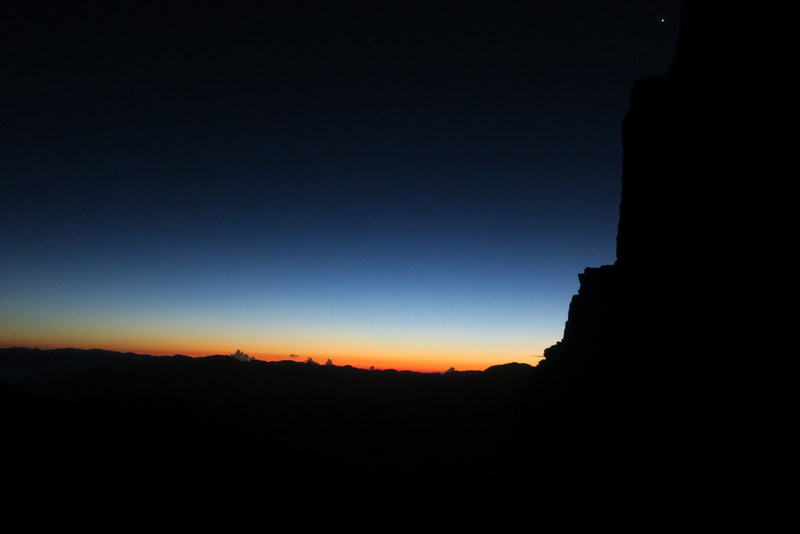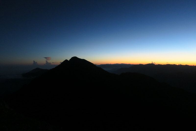 Early to bed, early to rise, makes a man healthy, wealthy and wise. So they say. On Thursday night, we were in bed soon after 7:00 pm, and up with the alarm yesterday morning, Friday, at 3:00 am. But none the healthier, wealthier or wiser. Sorry about that. At such altitude, sleep is not easy to come by, and anyway, an early start gets us to see the views – and the sunrise! So 8 of us from our group set off before 4:00 am to the West Peak, 3,518m, a 3-hour round trip. West Peak is all covered in forest, but through the gaps in the trees, there were some amazing views.