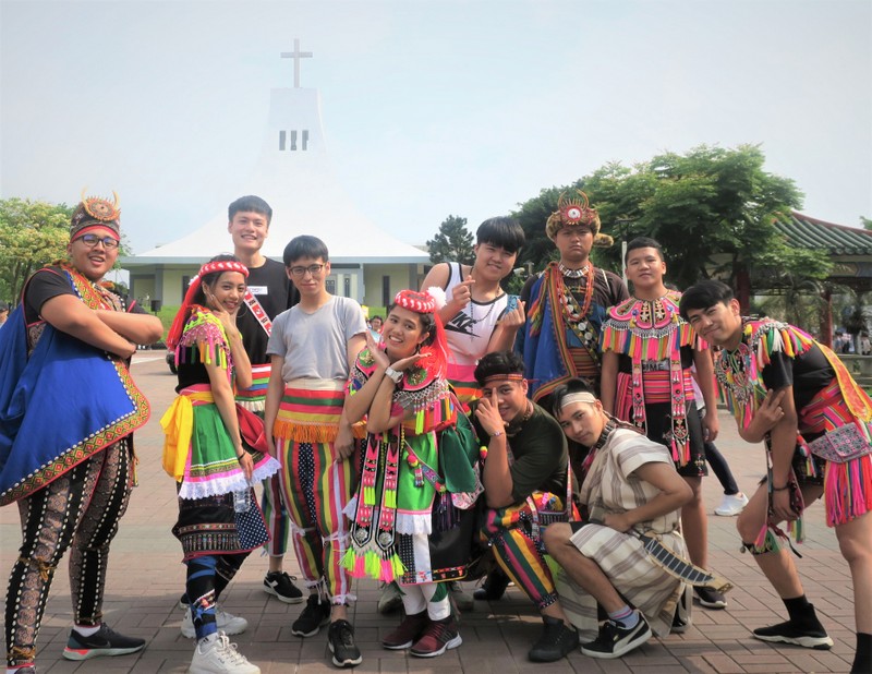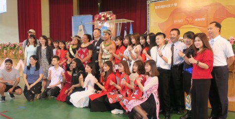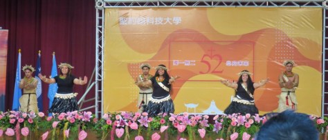 ”In my country, Kiribati, 52 is a wonderful age to be! Still young, still full of energy and enthusiasm, still willing to try new things; but also at 52, you’ve eaten a lot of coconuts, you’re mature, you’re full of wisdom!” The words, more or less, of Kiribati’s very lively Ambassador to Taiwan, Tessie Eria Lambourne, at the 52nd Anniversary Celebrations of St. John’s University last Saturday, April 27. She brought with her 6 of the 70+ students from Kiribati who are currently studying in Taiwan on scholarships from the Taiwan government; and they delighted the audience by performing one of their dances for us at the celebration event. Thank you, and what a great way to celebrate!