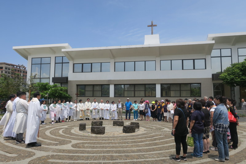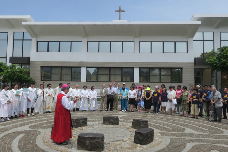 After the service was finished, we went round to the back of the church centre for a blessing, led by Bishop Lai, of the newly-installed labyrinth, which has been moved from further down the campus, making it easier to maintain…