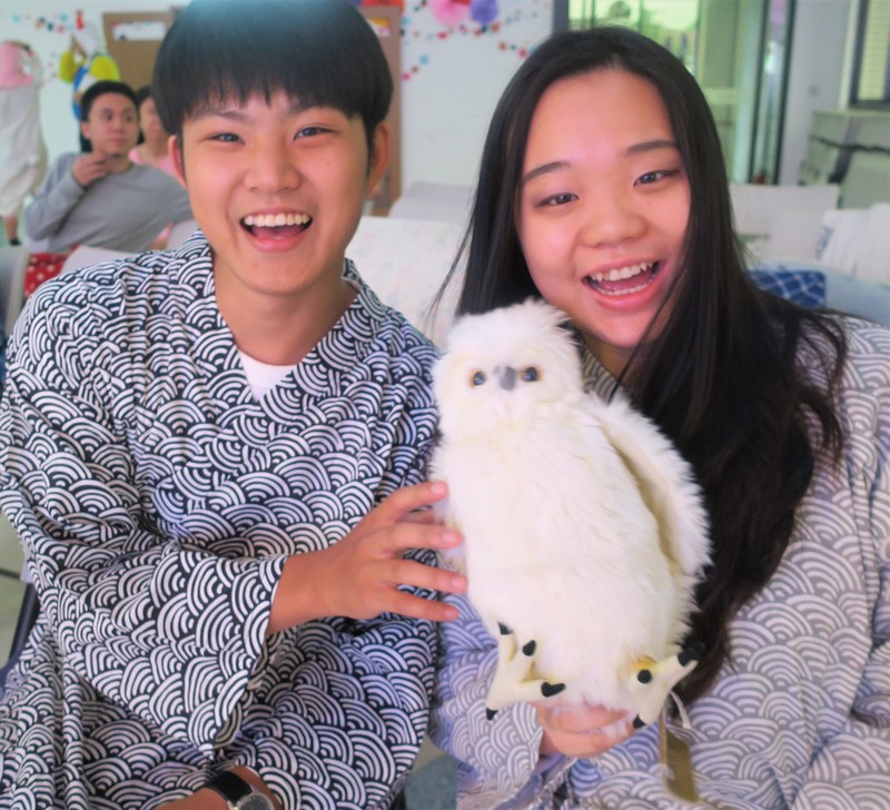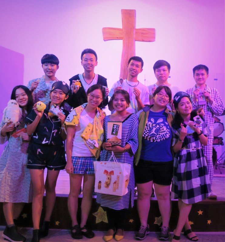 Although it is sad to say goodbye, we have many happy memories! Last Thursday, our student fellowship (along with some fellowship alumni and chaplaincy staff) gathered to say goodbye to our 9 graduating fellowship members. The evening started with a formal meal, then we moved onto a celebration party, and this year’s theme was a pyjama party – ah, what a laugh! By tradition the graduating students prepare something special to present to the student fellowship, so here they all are with our current fellowship leader….