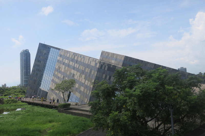 Lanyang Museum building was “designed by a team led by Kris Yao those design was inspired by the ‘cuestas’ commonly seen along Beiguan Coast. The museum adopts the geometric shapes of the cuestas where the roof protrudes from the ground at an angle of 20 degrees meeting a wall which rises from the ground at an angle of 70 degrees.” Really impressive. I liked it. Not sure about that big apartment building right behind it, but hey, at least the residents must have a good view!