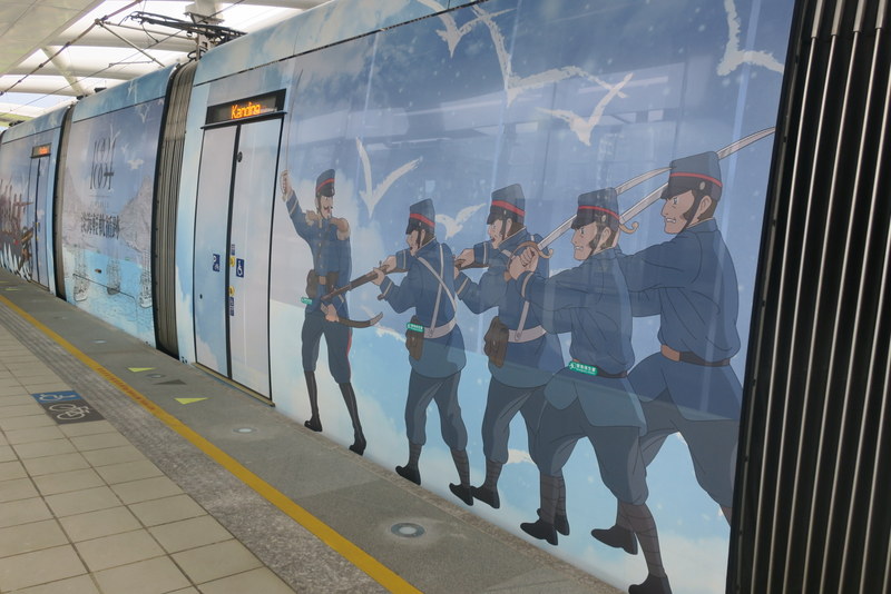This month one of the trains has been decorated to commemorate the 135th anniversary of the Battle of Tamsui, part of the Sino-French War. This is the first train on this line to be themed in this way; let’s hope there’s many more to come – cos Tamsui has a whole lot of history worth commemorating!