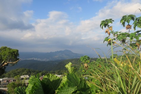 So all in all, I think it’s better to start at the west end of the hike, which is at Qingtian Temple 清天宮登山口 and walk eastwards. The bus you need is the S6 (小6) bus from Beitou MRT, and there are lots of buses all day long. Also lots of people on a weekend all queuing for the early buses! Get there early. The earliest I could get to Qingtian Temple on Saturday was at 7:20 am. Qingtian Temple village has a temple or two, a public toilet and a large noticeboard with a map. The whole trail is very well-signposted as long as you know the order of the mountains. The trails on Yang-ming Shan were mostly built in the Japanese Era, and they were built to last forever, mostly of stone. This is the view from Qingtian Temple Trail-head over towards Guanyinshan…