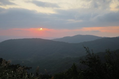 By 4:30 pm I was at the final summit, Mt. Ding 頂山 (768 m), and from there, on down to Fengguikou Trail Head 風櫃口登山口. At the car-park, there’s a path immediately to the right that goes from the trail head to cut off the winding road, but it’s steep, and it was dusk, so I took the long winding road, also to the right, heading towards Shilin, which took ages. But the sun was setting, it was lovely!