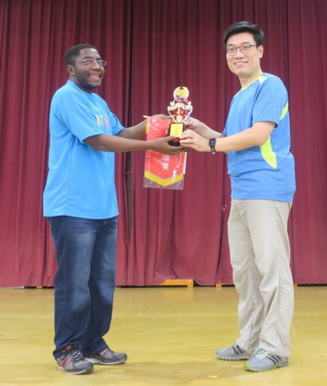 Awards were presented to individual winners as well as to the teams. The Taiwan Episcopal Church came out as overall winners, and Rev. Philip Lin accepted the cup on behalf of the church from Fr. Mbudi Masela (CICM, based at Qidu, Keelung, originally from the Congo), and then the RC Church received the award for the most energetic team, presented to Fr. Masela by Bishop Lai.