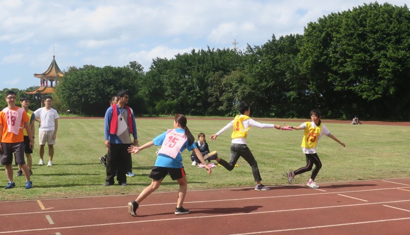 The Sports Day is organized by the different churches and organizations in turn; this year it was the turn of Taiwan Christian Service 台灣基督教福利會, and they asked to hold the event here at St. John’s University. Taiwan Christian Service is a relief agency, founded in 1954 by the Church World Service and Lutheran World Relief. The short sermon at the opening service of the Sports Day was given by Rev. Liu Ren-Hai of the Lutheran Church, who is also chair of Taiwan Christian Service.