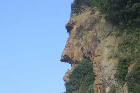 Then a bus turned up and we got on and headed to Shenao Fishing Port. From a distance, the cliff face looks a bit like a face outline of a very unfriendly giant…