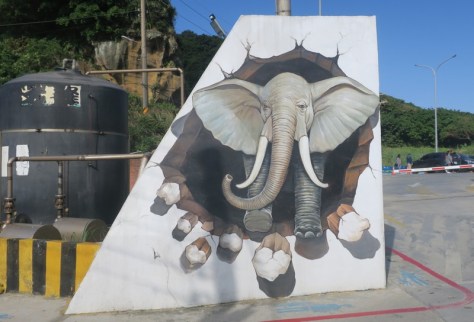 And the highlight of the day? It must be that elephant rock, oh and the views over towards Jiufen. What a place! We have an elephant rock here and an elephant mountain in Taipei. So if you like big grey animals, do come and visit! This was the wall mural in Shenao …