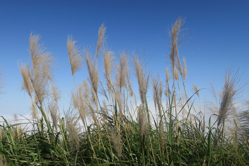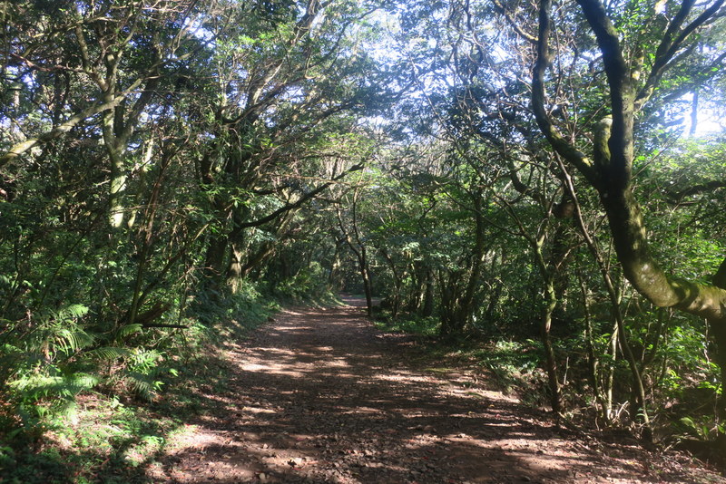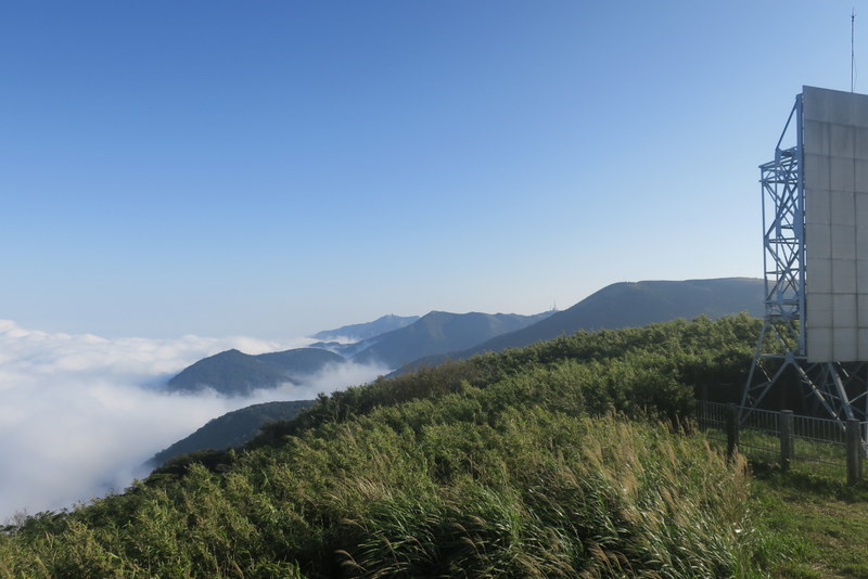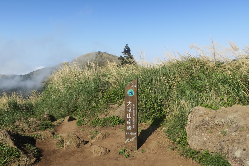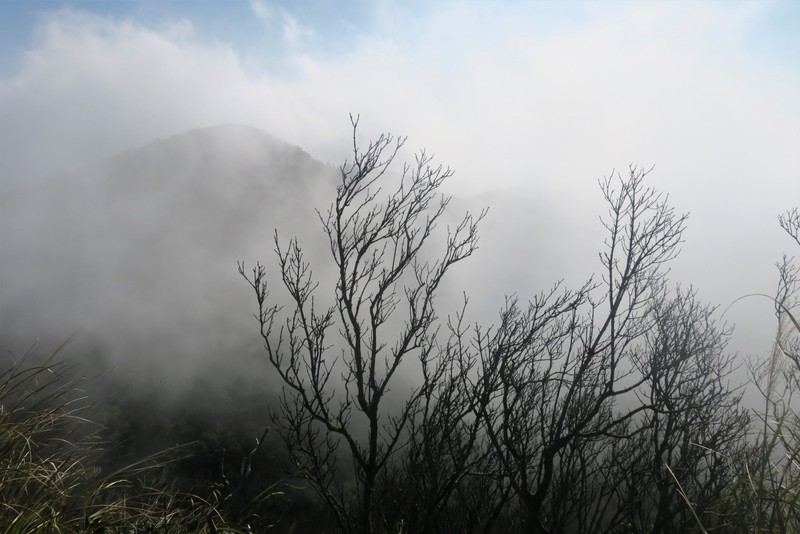 Yesterday was THE day!  The weather forecast was sunny, warm and dry, it was a very rare free Saturday and the beautiful Yang-ming Shan Mountains above Taipei were calling.   At 7:00 am, it was just light as I set off on the trail upwards into the clouds, complete with gloves for the roped sections ahead, and plenty of coffee to keep me going.  Ever hopeful that the forecast would be right, I ventured forth – and so it turned out to be, at the top of Mt. Miantian 面天山 (977 m) where there are 2 huge microwave reflectors, I could look down onto a massive and beautiful sea of white clouds covering the whole of the northern coast, including St. John’s University and most of Taipei City.  Misty memories came back of the last time I was on Yang-ming Shan at the end of October 2019 to do the ‘陽明山東西大縱走活動’ ‘Yang-mIng Shan East-West Traverse’ ~ a killer hike and yes, mostly done in the mist. Yesterday turned out to be beautiful weather all day – cloud down below, blue sky above. And so the good weather continued – onto the summits of Mt. Datun 大屯山, Datun west, south and main peaks. The skies were blue, the clouds were white and the views were incredible.