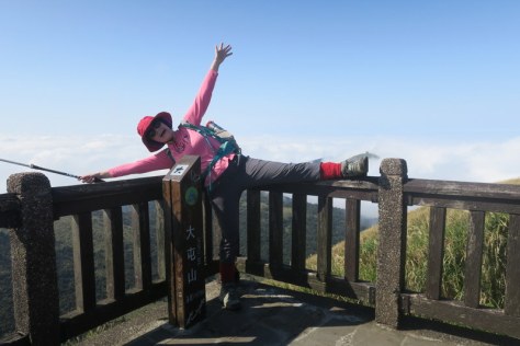 Later, I did find out that one of my friends was following the same route as me, but a bit later in the morning – and by the time she got there at lunchtime, the sea of clouds had dispersed a bit.  And it was a bit of a surprise to bump into one of my adult students on the top of Mt. Datun, although Yang-ming Shan is that kind of place – anyway, it’s her who kindly took this photo ha ha!