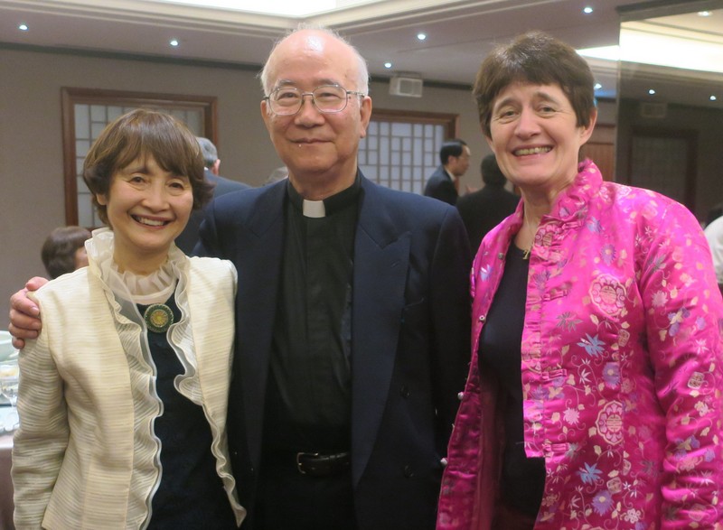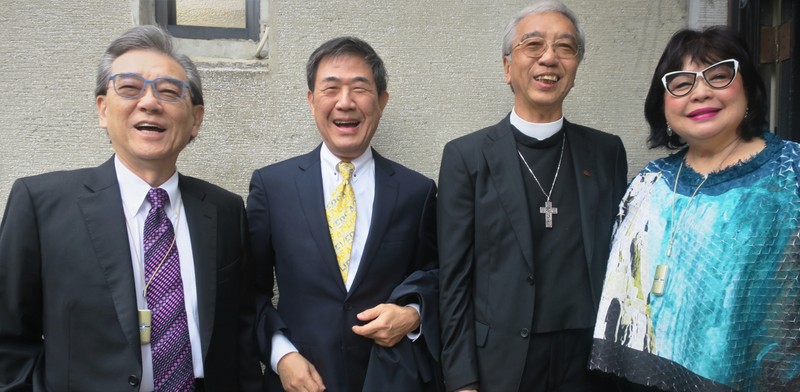 Among all the international visitors was a group of 15 clergy and church members from our companion diocese of Osaka, Japan, led by their bishop, Bishop Haruhisa Iso. One of their very lovely clergy, Rev. Akira Iwaki and his wife were celebrating their golden wedding anniversary that very day. Rev. Iwaki has been to Taiwan many times, and the last time he came, it was his 70th birthday. This time he was celebrating 50 years of marriage. Many congratulations to them both! He led the Osaka ladies in a lively song at the dinner….