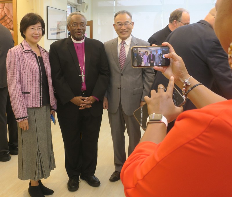 The official events of the consecration weekend started on Friday February 21, when Presiding Bishop Michael Curry met with the press, namely the Christian Tribune (whose report is here) and the Christian Daily (here) and I was there too. The first question was from the Christian Tribune, about how Presiding Bishop Curry responds to the fear created by the coronavirus situation. He answered with the words of 1 John 4:18, ‘Perfect love casts out fear’ and described how, for him, that meant trusting in God through prayer, following medical advice about what precautions to take, caring for others, and working to making sure that everyone has access to good healthcare. He was also asked about how he balances ancient traditions with a changing modern society, how to encourage young people in their faith, and the importance of being involved both ecumenically and internationally.
