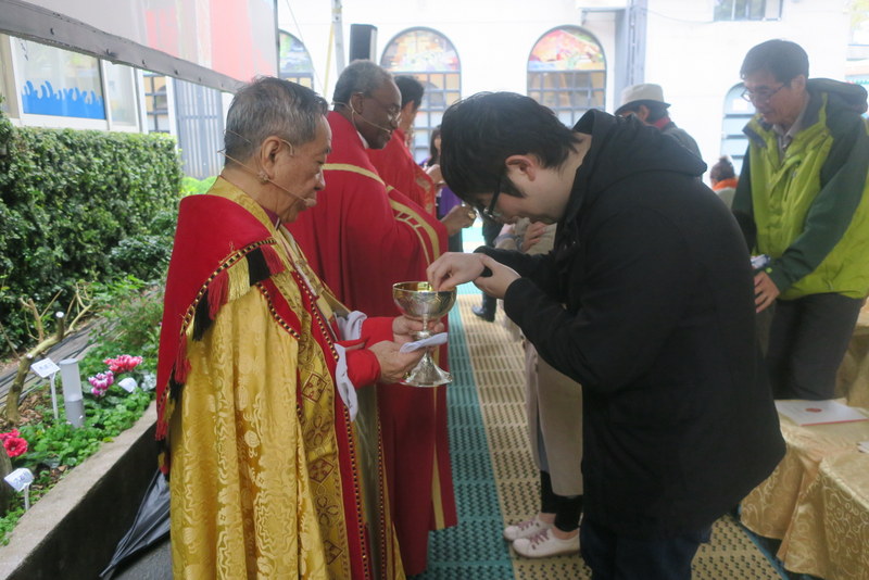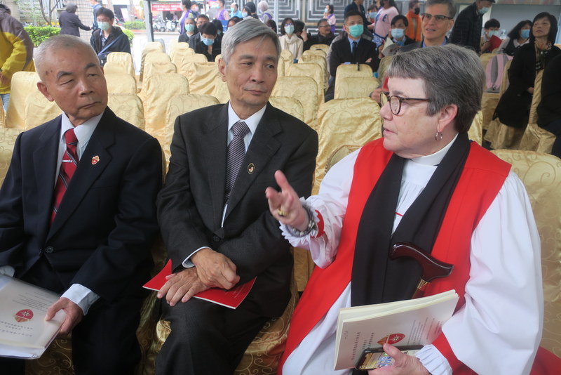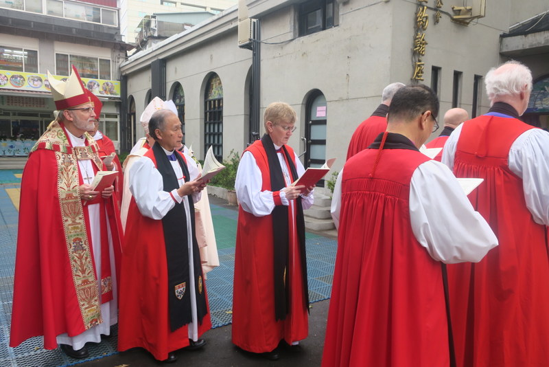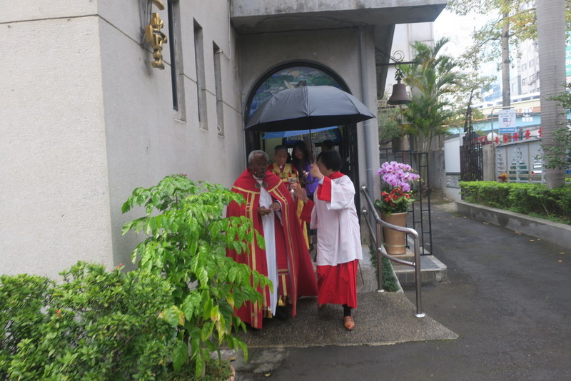 It was particularly moving for us that so many bishops decided to come to Taiwan, despite the coronavirus situation, to join in the consecration service. As you know from the ENS article above, the archbishop, bishops and visitors from Hong Kong, and also the Rev. Canon Bruce Woodcock from the Episcopal Church sadly had to cancel because of travel restrictions. Many Taiwan people chose to stay home and watch on the livestream instead, a wise move particularly for those sitting outside. It was sunny in the morning but in the afternoon a cold wind blew and it started to rain – definitely chilly and wet!