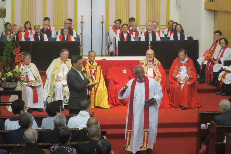 At the end of the service, Curry paid tribute to Chancellor Herbert H. P. Ma, presenting him with a letter of thanksgiving in recognition of his ministry, constancy, wisdom and faithfulness over the past 65 years to the Episcopal Church in Taiwan, which was established in 1954 and is now a member diocese of Province VIII.”