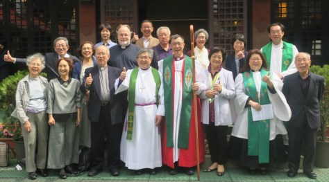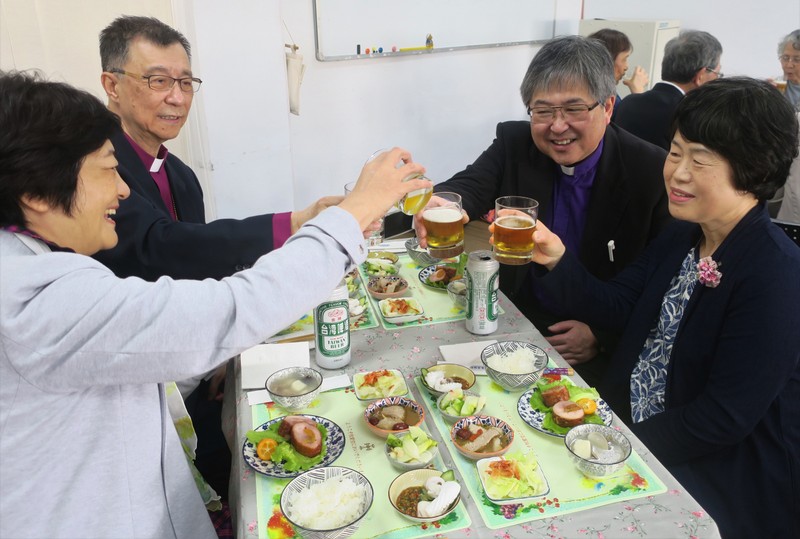 The consecration banquet, originally arranged for the Saturday evening was cancelled, meaning everyone could go home, but for the international guests, we arranged a small dinner. During the dinner, Archbishop Moses of Korea asked to sing a song, and that led on to all the other groups of bishops and visitors standing up to perform. For the Taiwan group, Hannah led a children’s action song in Taiwanese. I am sure that not many new bishops, on the night of their consecration, find themselves standing up in front of other bishops performing an action song for children!