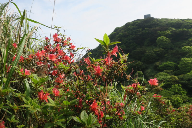 I was on the grassy summit of Mt. Xiangtian (949 m) by about 8:40 am – check out the Oldhams Azalea (Rhododendron oldhamii) – endemic to Taiwan and in flower all over the mountains at this time of year….