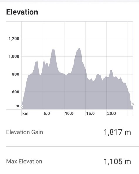 Fortunately the whole hike can be done in more manageable and smaller sections – it divides nicely into 4, which can be done over 4 days or 2. If you take the harder option, and do it all on one day, be prepared for aching limbs for 3 days afterwards – it’s hard work! Check out yesterday’s elevation record….