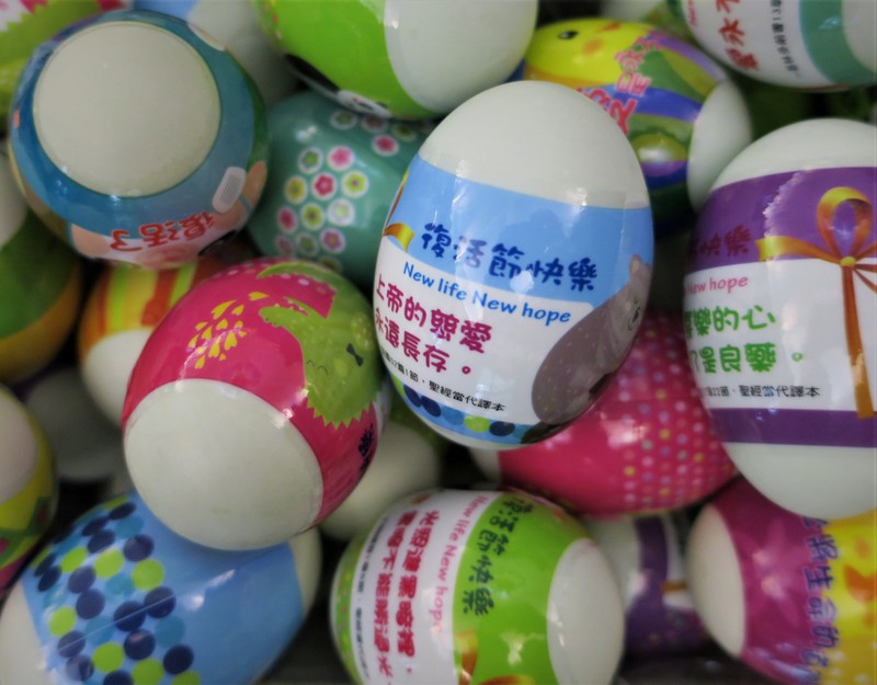 So it’s a good job we have other ways to communicate. And communication in Taiwan these days is mostly done from behind a face-mask. Face-masks have been popular in Taiwan for years, but now they are compulsory on public transport, in all government buildings, schools, markets and many shops, along with temperature checks, hand sanitizer and social distancing. Most people wear them most of the time, me too. Face-masks hide virtually all facial expressions, especially as many Taiwan people also wear glasses, so you never again need to smile at anyone, in fact you can happily ignore everyone around you. That is until you get to teach a class of children and need them to speak, like in my weekly early morning class at the local middle school. They sang for my birthday a few weeks ago, all masked up. Thanks everyone! We also went there in Holy Week to distribute Easter eggs (actually salted duck eggs, dyed by our student fellowship) to the staff and children…