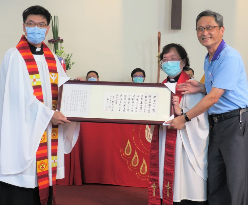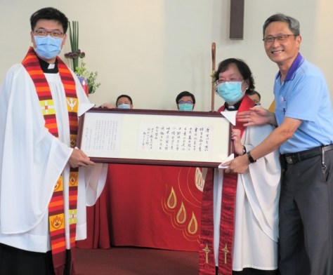 Also a gift presentation from Dean Philip Lin of St. John’s Cathedral on behalf of Canon Chancellor Professor Herbert H. P. Ma – of a framed calligraphy artwork done by Professor Ma’s father, Ma Shou-Hwa…