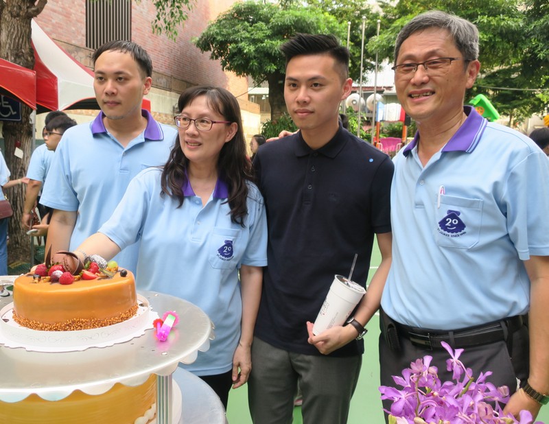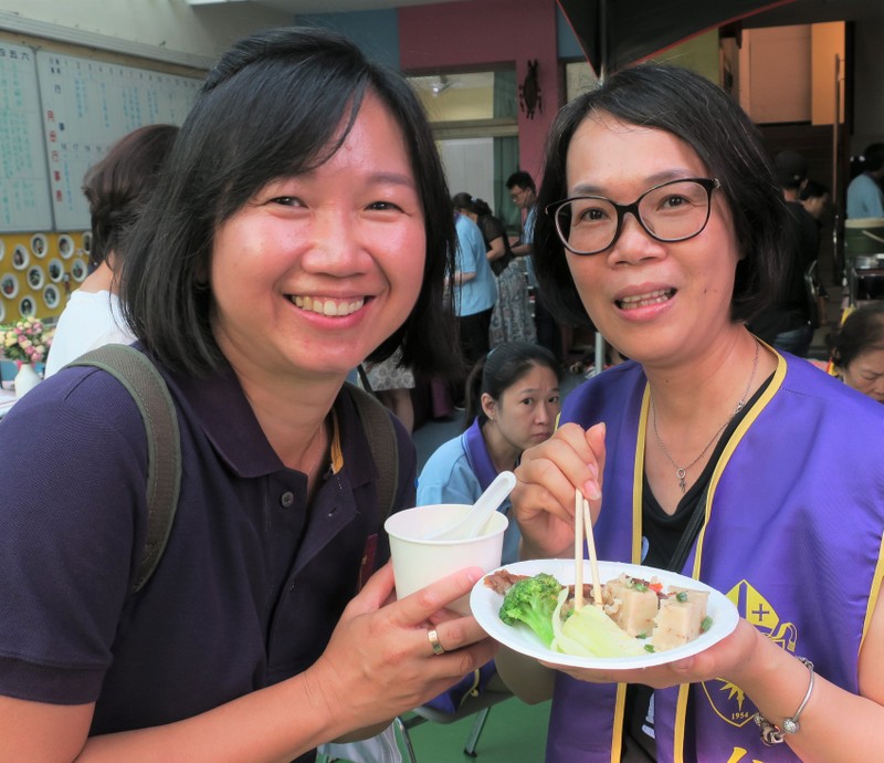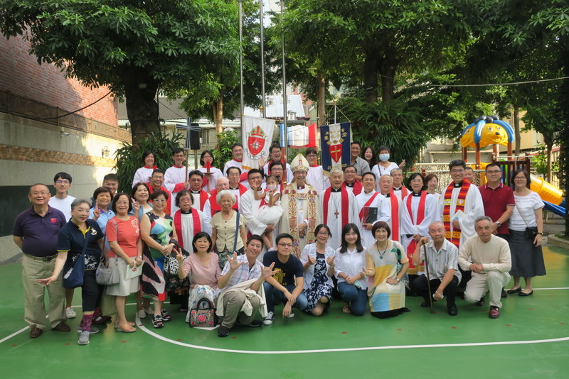 Every year on St. James’ Day, July 25, St. James’ Church hold their patronal festival, and this year is the 50th anniversary of the St James’ Church building, so it made sense to make it a double celebration. One thing St. James always excels at is anything to do with celebrations! They plan for weeks, in almost military detail, but it always pays off. With Rev. Lily Chang, senior warden Mr. Samuel Chen and his wife, You-Ju, supervisor of the kindergarten, plus their team of kindergarten teachers and church members, they managed to make the double celebration a really amazing event. This is retired rector, Rev. Charles C. T. Chen with his daughter-in-law, You-Ju and Rev. Lily Chang cutting the birthday cake!
