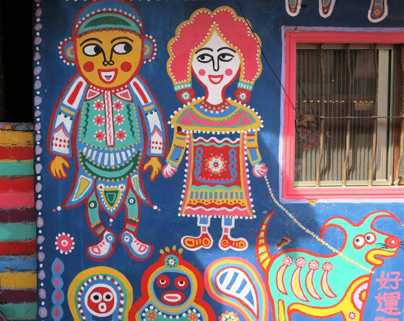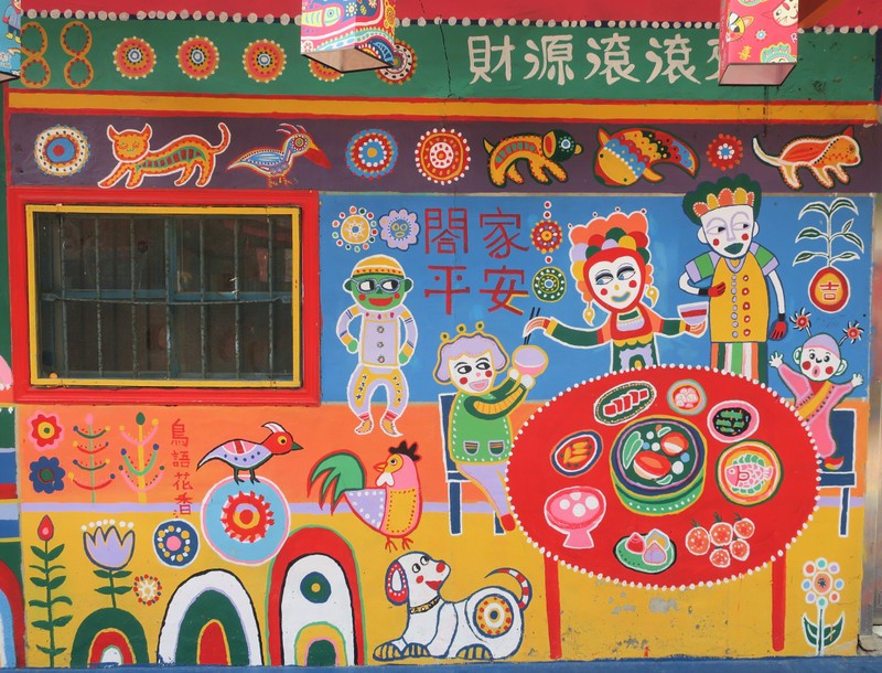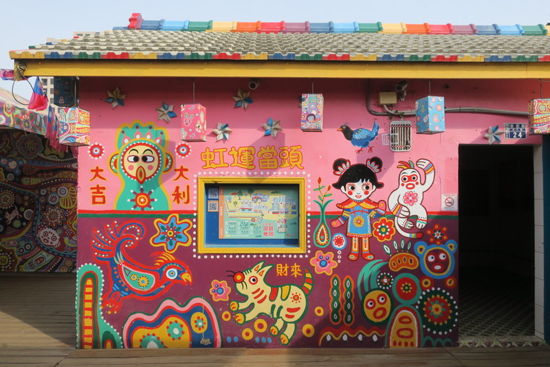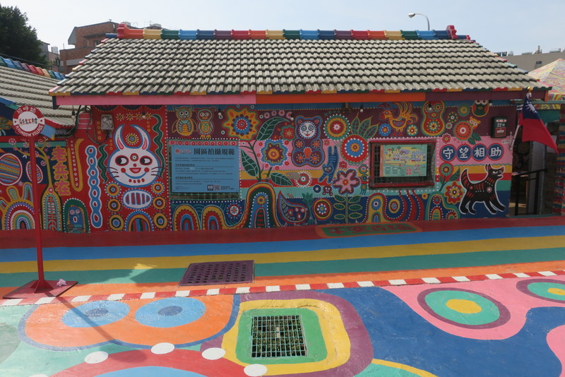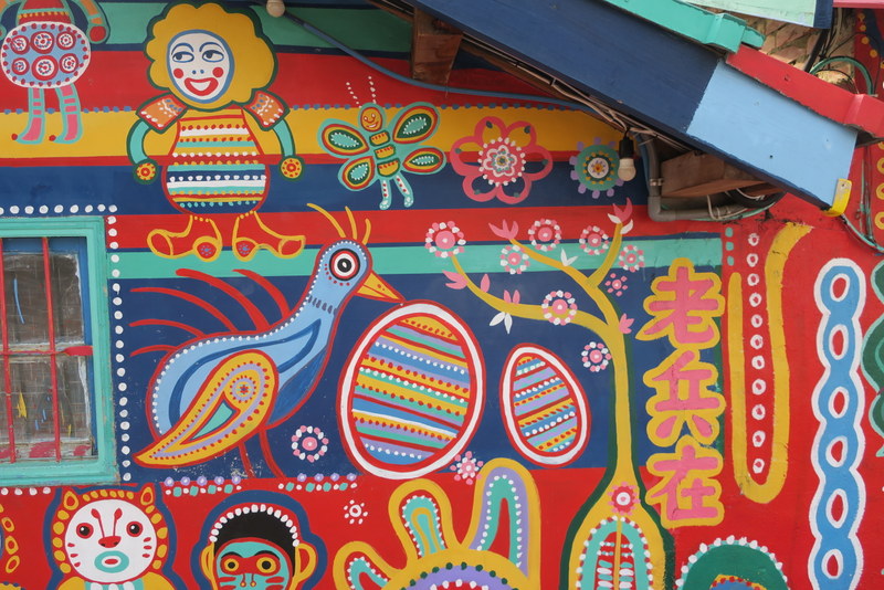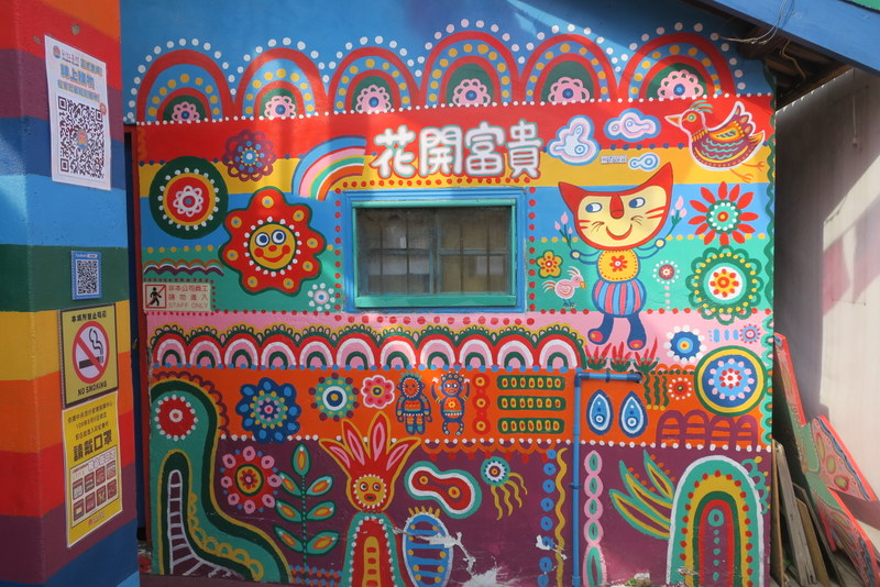 Just to remind you, this place is the last remaining few houses of an old Veterans Village, built for soldiers and their families who came to Taiwan after 1949. Most of the land has already been taken for redevelopment, but old Mr. Huang (Huang Yong-Fu 黃永阜), known as ‘Rainbow Grandpa’ (彩虹爺爺), decided to start painting the remaining houses a few years ago, as a way to save his village….