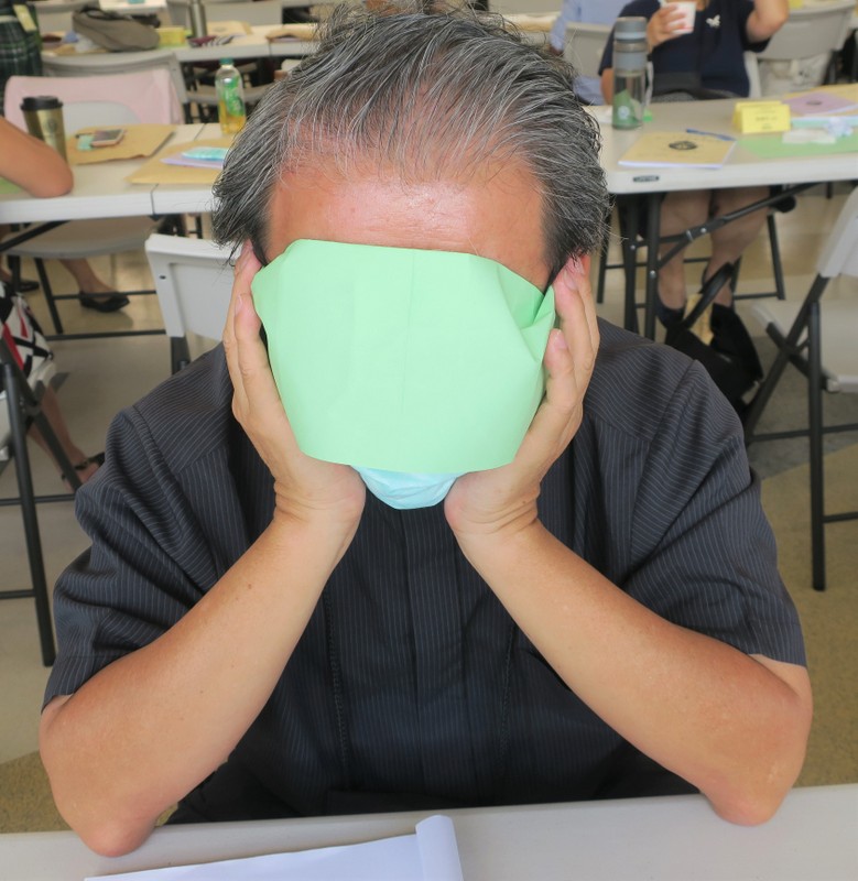 Switching off for a few moments! 😴 One of our clergy takes a quick rest after lunch @ Diocese of Taiwan Annual Convention, August 15, 2020 😴 Gotta smile ~ that’s just a piece of green A4 paper folded up, with his face-mask underneath ~ so creative, so practical! 😇