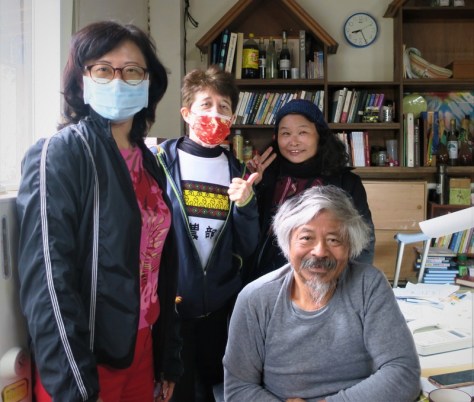 We managed to spend a few days there last week, February 8-11, fitting in our visit just before Chinese New Year. My good friend, A-Guan from St. James’ Church, Taichung, and another friend, Shiu-Chin from Grace Church, Tainan organized everything ~ and off we went! The place we always like to stay is Bunun Leisure Farm 布農部落 in Yanping Township 延平鄉, in the mountains above Taitung City. There are 5 villages in Yanping, mainly Bunun Indigenous People. Bunun Leisure Farm is near Taoyuan Village 桃源村, and was set up by Rev. Bai Guang-sheng in 1995, after serving 11 years as Presbyterian pastor in the village church. Through the “Bunun Cultural and Educational Foundation”, his aim was to develop a sustainable tourism industry with a Bunun flavor, including performances, weaving studio, coffee shop, guest houses, restaurants – and it’s still going strong! This is us with Rev. Bai….
